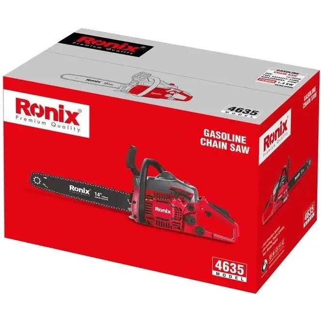 اره بنزینی رونیکس مدل 4635 یک اره بسیار مناسب برای برش درختان، هرس کردن شاخه های درخت، تکه تکه کردن تنه درختان برای تهیه هیزم و از این موارد بکار می رود و بخصوص برای جاهایی که دسترسی به برق مشکل است بسیار مناسب می باشد.