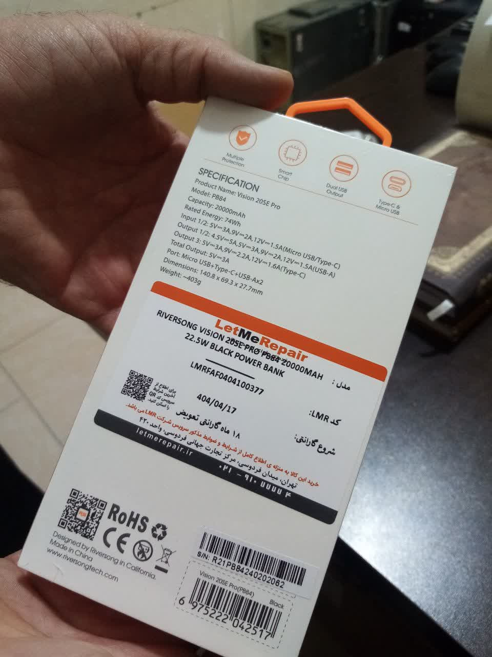 پاوربانک ریورسانگ 20 هزار - گارانتی 18 ماهه