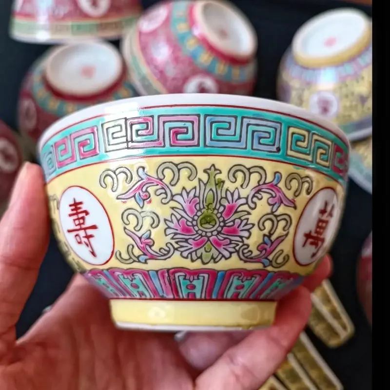پیاله و قاشق های بینظیر وکمیاب رنگ لیمویی