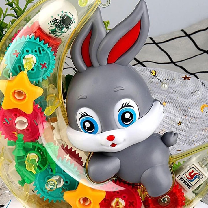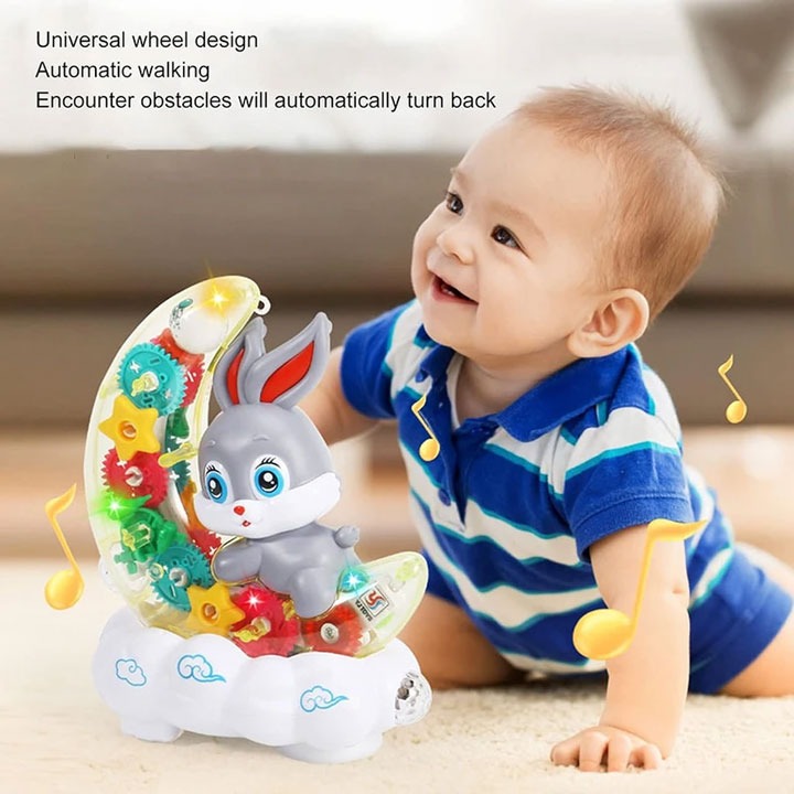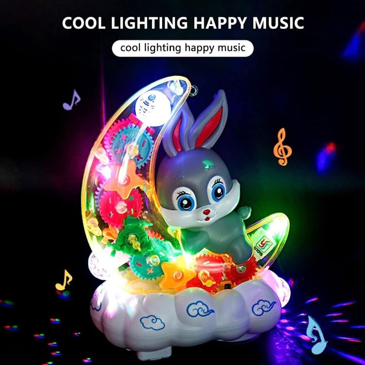 این اسباب بازی جذاب با ترکیب نور، صدا و حرکت، بهترین همراه برای کودک شماست! اسباب بازی خرگوش چرخ دنده ای طرح ماه دارای نورپردازی رنگارنگ، موسیقی آرامشبخش و چرخدندههای رنگی و شفاف است.