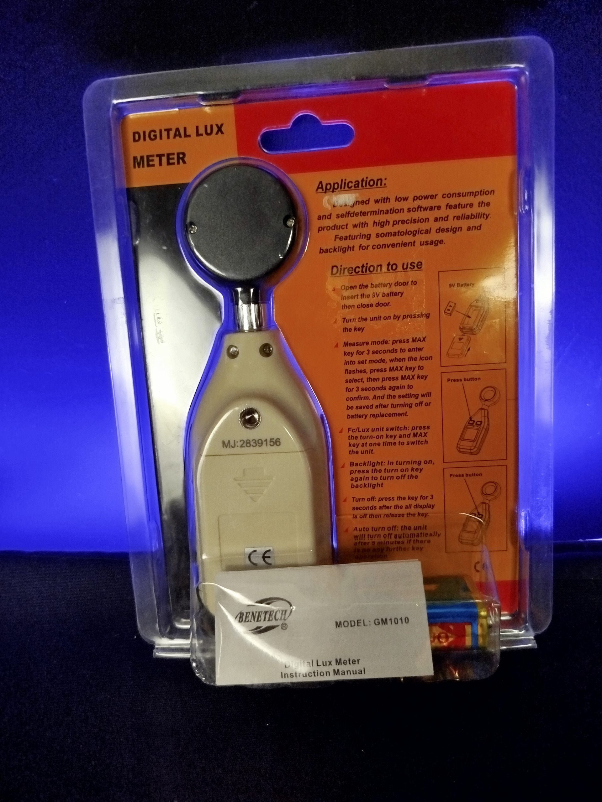 مدل BENETECH GM1010 یک لوکس متر پرتابل و ارزان قیمت با پراب سرخود و دقت 3-4% لوکس از برند بنتک چین میباشد. از ویژگیهای مهم این لوکس متر ارزان قیمت میتوان به بازه اندازه گیری لوکس محیط از 0 تا 200.000 لوکس و همچنین بازه 0 تا 185.806 fc با وضوح 1 عدد صحیح و محیط مناسب برای استفاده و اندازه گیری 0 تا 40 درجه سانتیگراد و رطوبت 10 تا 90 درصد %RH ، پیشنهاد شده است و همچنین نمایشگر چراغدار اشاره کرد. از ویژگی های دیگر این محصول میتوان به اندازه گیری همزمان و همچنین ثبت مقادیر ماکسیموم ، منبع تغذیه باتری 9 ولتی کتابی ، اندازه گیری سریع اشاره کرد.