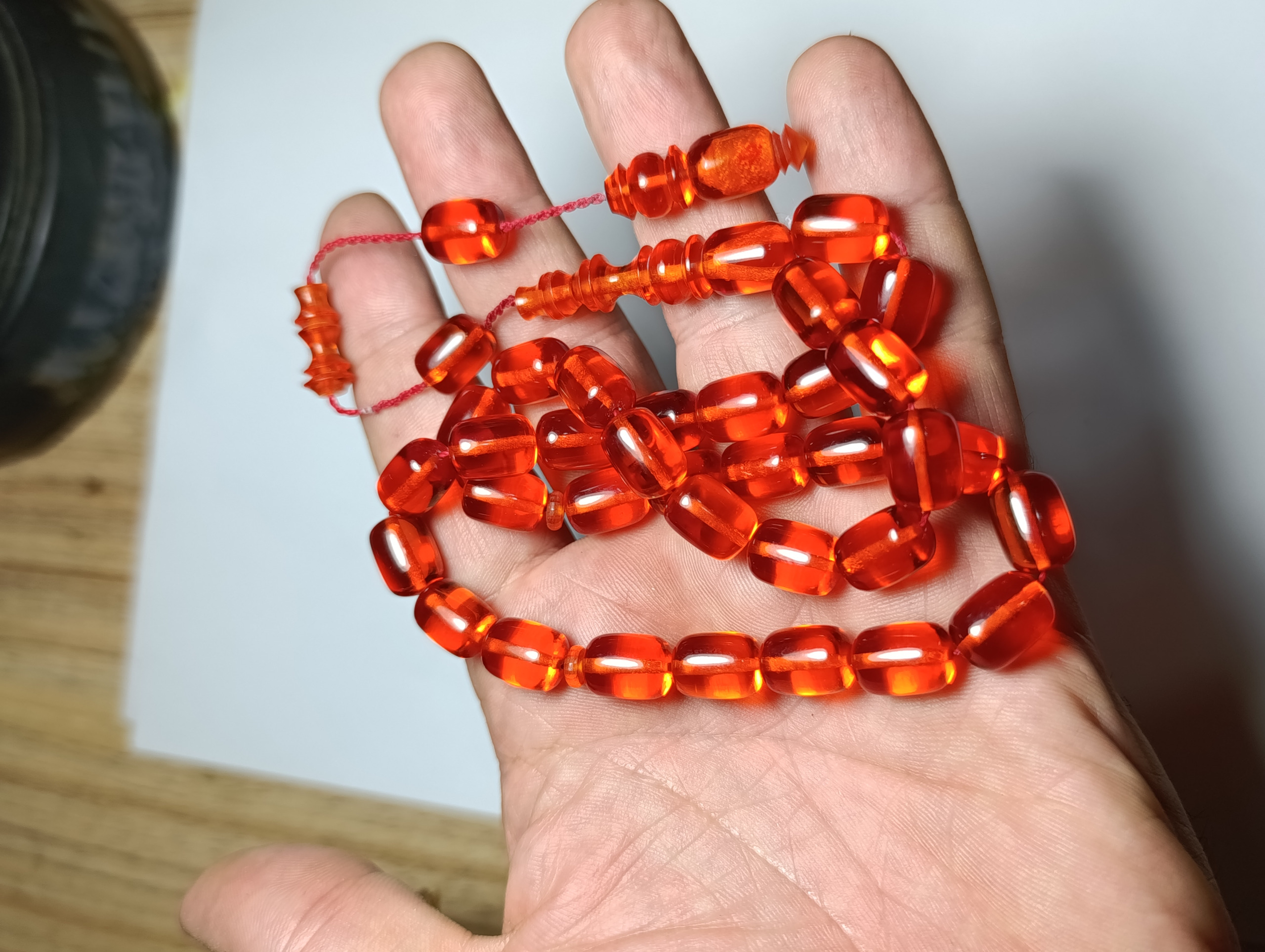 درود بر شما بزرگواران ( وزن با سربند حدودا 30 گرم سایز 9 )...سندلوس موادی است که از زمان جنگ جهانی دوم به بعد در کشور آلمان برای صنعت ..اسلحه سازی ..مصالح ساختمانی ..و غیره.. به دلیل نسوز بودن آن و کاربردهای زیادش ساخته شد که به شکل کتاب هایی به اندازه های مختلف وارد بازارهای جهانی شده و کاربردهای زیادی دارد و کشور آلمان هرگز طرز تهیه آن را به هیچ کشوری نداده و در کشور های مسلمان از سندلوس به عنوان تسبیح و چوب سیگاری و دسته چاقو و تاسو غیره ..استفاده میشود ..متاسفانه در کشور ایران بعضی افراد سود جو برای اینکه سود بیشتری براشون حاصل بشه سندلوسهای قدیمی رو صمغ مینامند و جدید ها رو شمش و مواد .. که کاملا اشتباه است..سندلوس از بدو پیدایشش مواد بوده و الان هم تولید میشه ..سوال اینجاست ..اگر سندلوس صمغ درخت است چرا نسوز است؟؟ مگر صمغ درخت نمیسوزد ؟؟..واقعا باید کمی فکر کنیم و به نتیجه برسیم ..چالشی که ایجاد شده اینجاست که کشورهای پاکستان و ویتنام و هند مدعی هستند که سندلوس میسازد ولی کاملا نتوانسته به مواد کلی دستیابی داشته باشد و سندلوسهای این کشورها از نظر کیفیت بسیار پایین هستند ..امروزه در کشور آلمان با سهامداران و مشارکت مسلمانان کشور ترکیه سندلوس تولید میشود و تولید آن متوقف نشده است ..برای شناخت مرغوبیت سندلوس بشاش بودن و زلال بودن و نسوز بودن آن ملاک است نه چیز دیگری ..سندلوسها به مرور زمان وقتی کهنه میشوند بوی خاصی میدهند که نشانگر قدمت اون میشه ..در تراشهای جدید هم به مرور زمان این مورد محقق میگردد و هیچ فرقی میان سندلوسهای قدیمی و جدید وجود ندارد و البته با پیشرفت تکنولوژی سندلوسهای جدید از نظر کیفی حتی بهتر از قدیمیها میباشند ....ارادتمند شما شهرامفر
