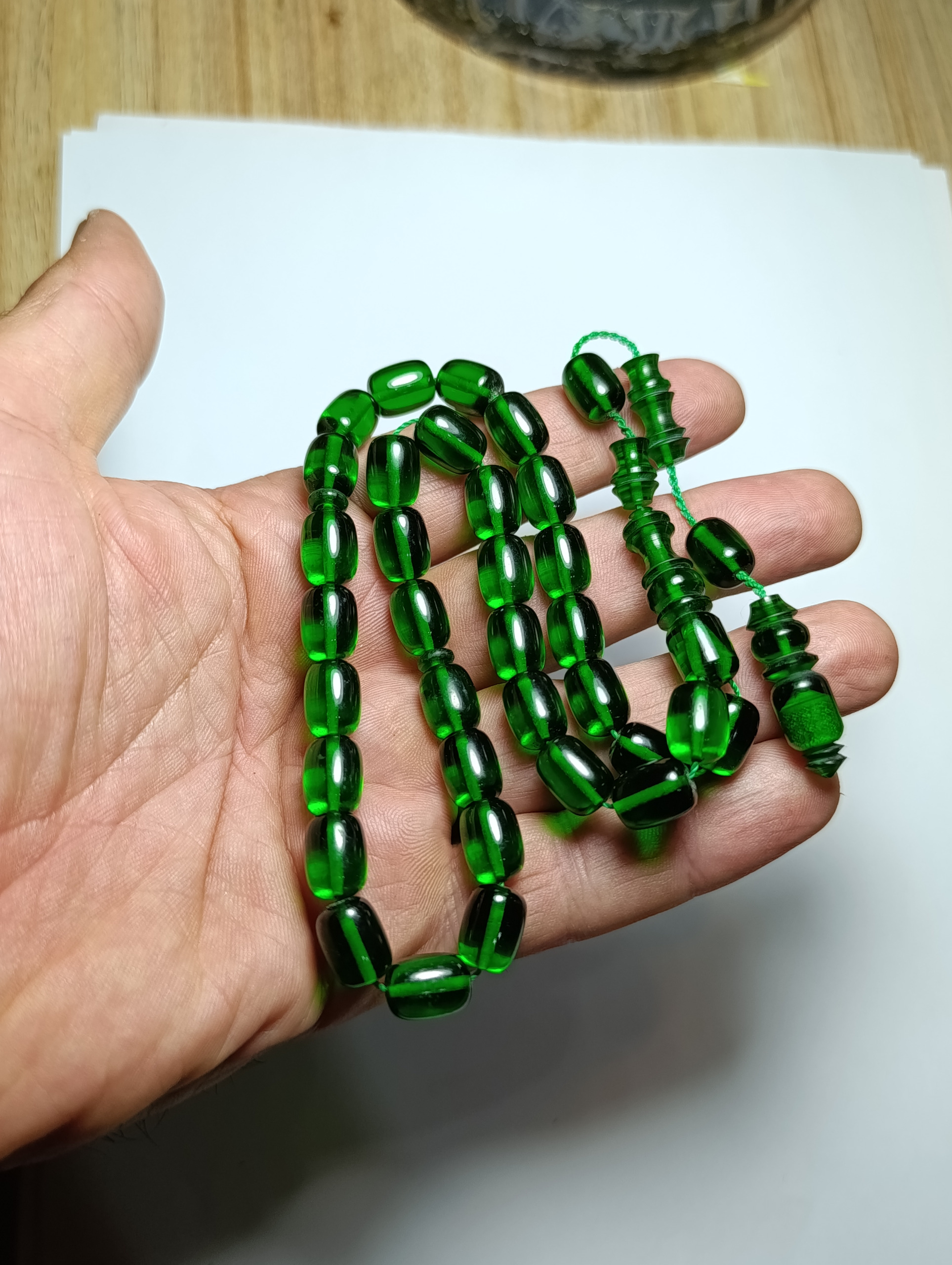 درود بر شما بزرگواران ( وزن با سربند حدودا 26 گرم سایز 8 )...سندلوس موادی است که از زمان جنگ جهانی دوم به بعد در کشور آلمان برای صنعت ..اسلحه سازی ..مصالح ساختمانی ..و غیره.. به دلیل نسوز بودن آن و کاربردهای زیادش ساخته شد که به شکل کتاب هایی به اندازه های مختلف وارد بازارهای جهانی شده و کاربردهای زیادی دارد و کشور آلمان هرگز طرز تهیه آن را به هیچ کشوری نداده و در کشور های مسلمان از سندلوس به عنوان تسبیح و چوب سیگاری و دسته چاقو و تاسو غیره ..استفاده میشود ..متاسفانه در کشور ایران بعضی افراد سود جو برای اینکه سود بیشتری براشون حاصل بشه سندلوسهای قدیمی رو صمغ مینامند و جدید ها رو شمش و مواد .. که کاملا اشتباه است..سندلوس از بدو پیدایشش مواد بوده و الان هم تولید میشه ..سوال اینجاست ..اگر سندلوس صمغ درخت است چرا نسوز است؟؟ مگر صمغ درخت نمیسوزد ؟؟..واقعا باید کمی فکر کنیم و به نتیجه برسیم ..چالشی که ایجاد شده اینجاست که کشورهای پاکستان و ویتنام و هند مدعی هستند که سندلوس میسازد ولی کاملا نتوانسته به مواد کلی دستیابی داشته باشد و سندلوسهای این کشورها از نظر کیفیت بسیار پایین هستند ..امروزه در کشور آلمان با سهامداران و مشارکت مسلمانان کشور ترکیه سندلوس تولید میشود و تولید آن متوقف نشده است ..برای شناخت مرغوبیت سندلوس بشاش بودن و زلال بودن و نسوز بودن آن ملاک است نه چیز دیگری ..سندلوسها به مرور زمان وقتی کهنه میشوند بوی خاصی میدهند که نشانگر قدمت اون میشه ..در تراشهای جدید هم به مرور زمان این مورد محقق میگردد و هیچ فرقی میان سندلوسهای قدیمی و جدید وجود ندارد و البته با پیشرفت تکنولوژی سندلوسهای جدید از نظر کیفی حتی بهتر از قدیمیها میباشند ....ارادتمند شما شهرامفر