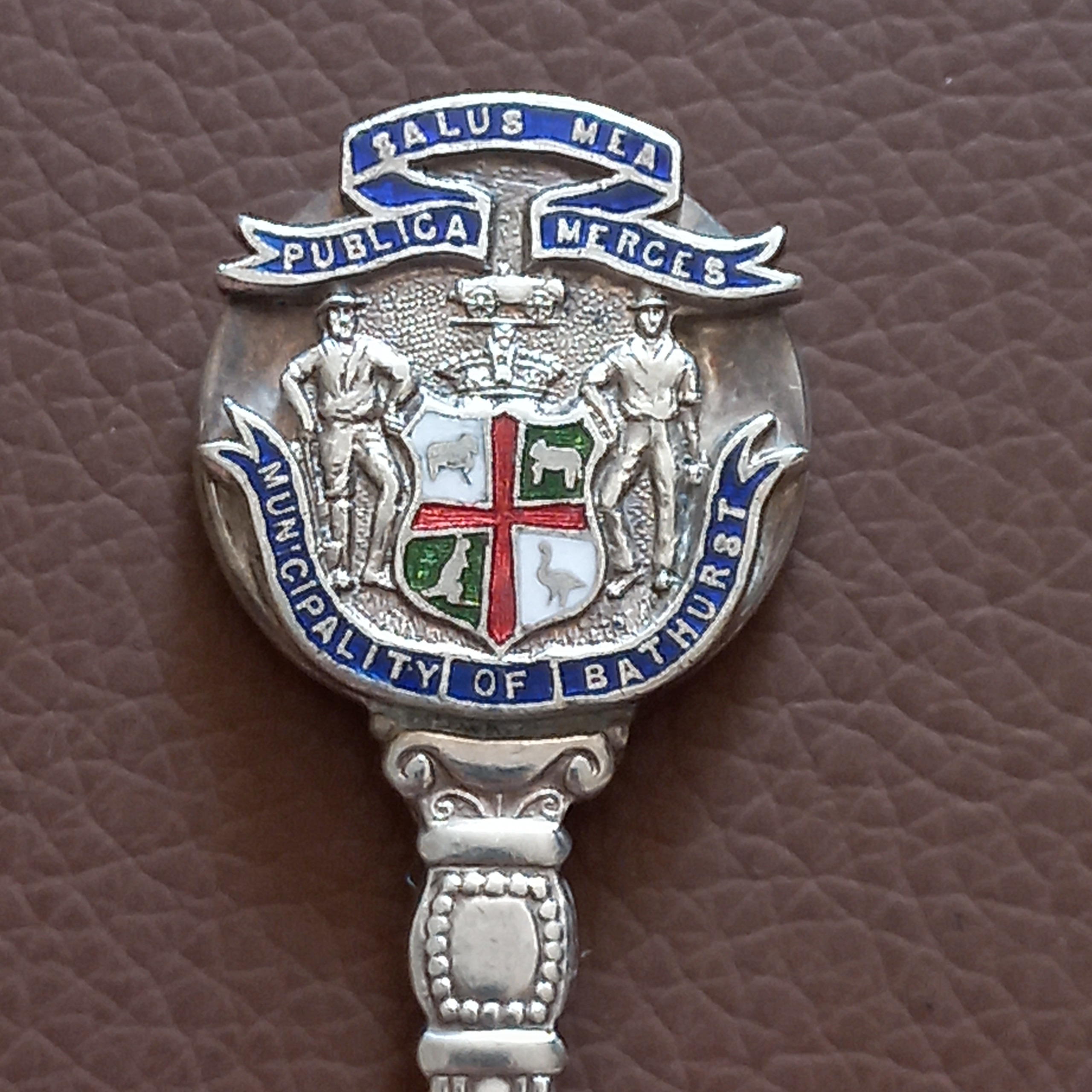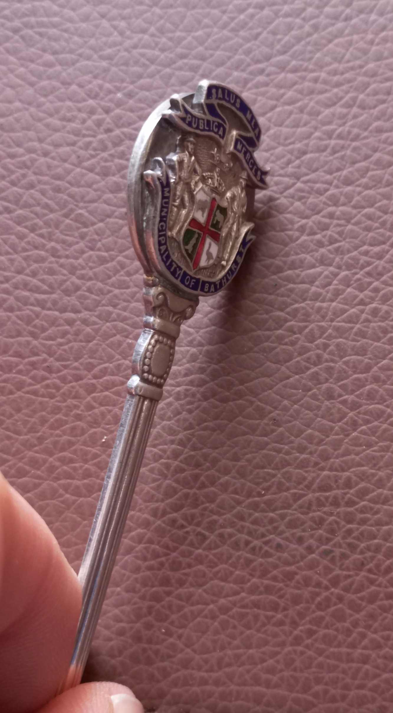 آیتم 10 - 595 _ قاشق آنتیک و قدیمی روکش نقره شهر باتورست استرالیا ساخت انگلیس بسیار مرغوب ، سنگین و زیبا با آرم و تاج سلطنتی ، با نوشته شعار سلامتی من یک تعهد عمومی است،فوق العاده کمیاب قیمت 1 میلیون تومان .