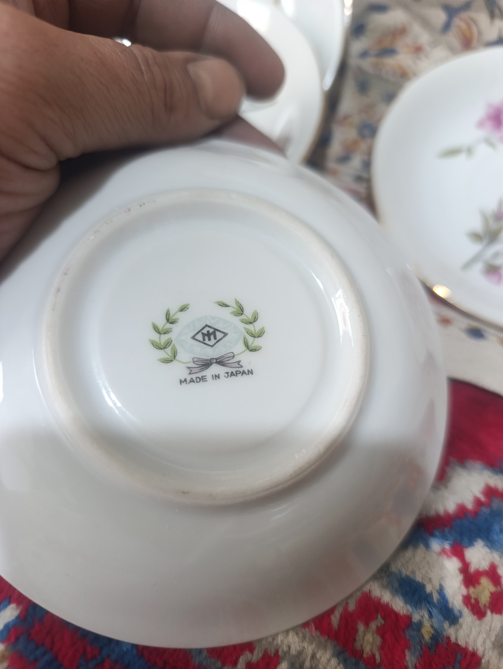 دو عدد سی خوری شش عدد نعلبکی گل سرخ ژاپنی اصل قدیمی لب طلا