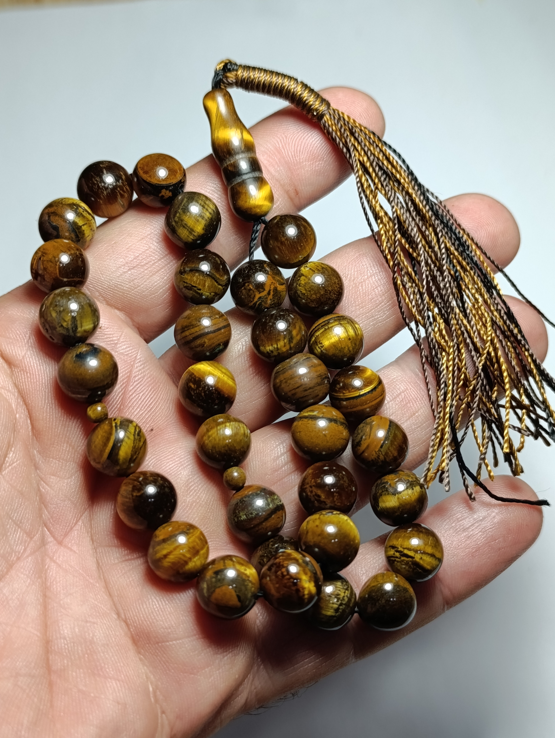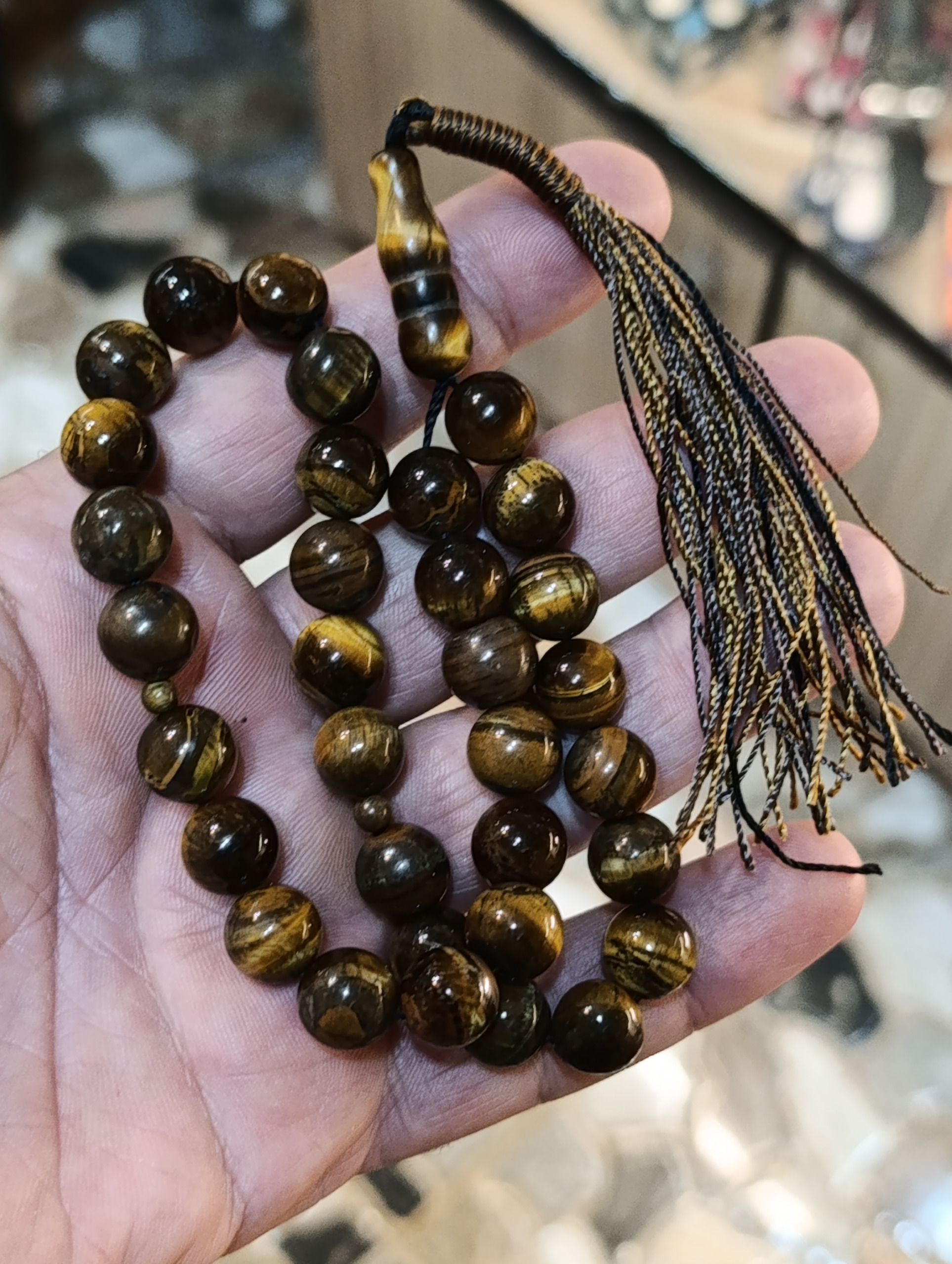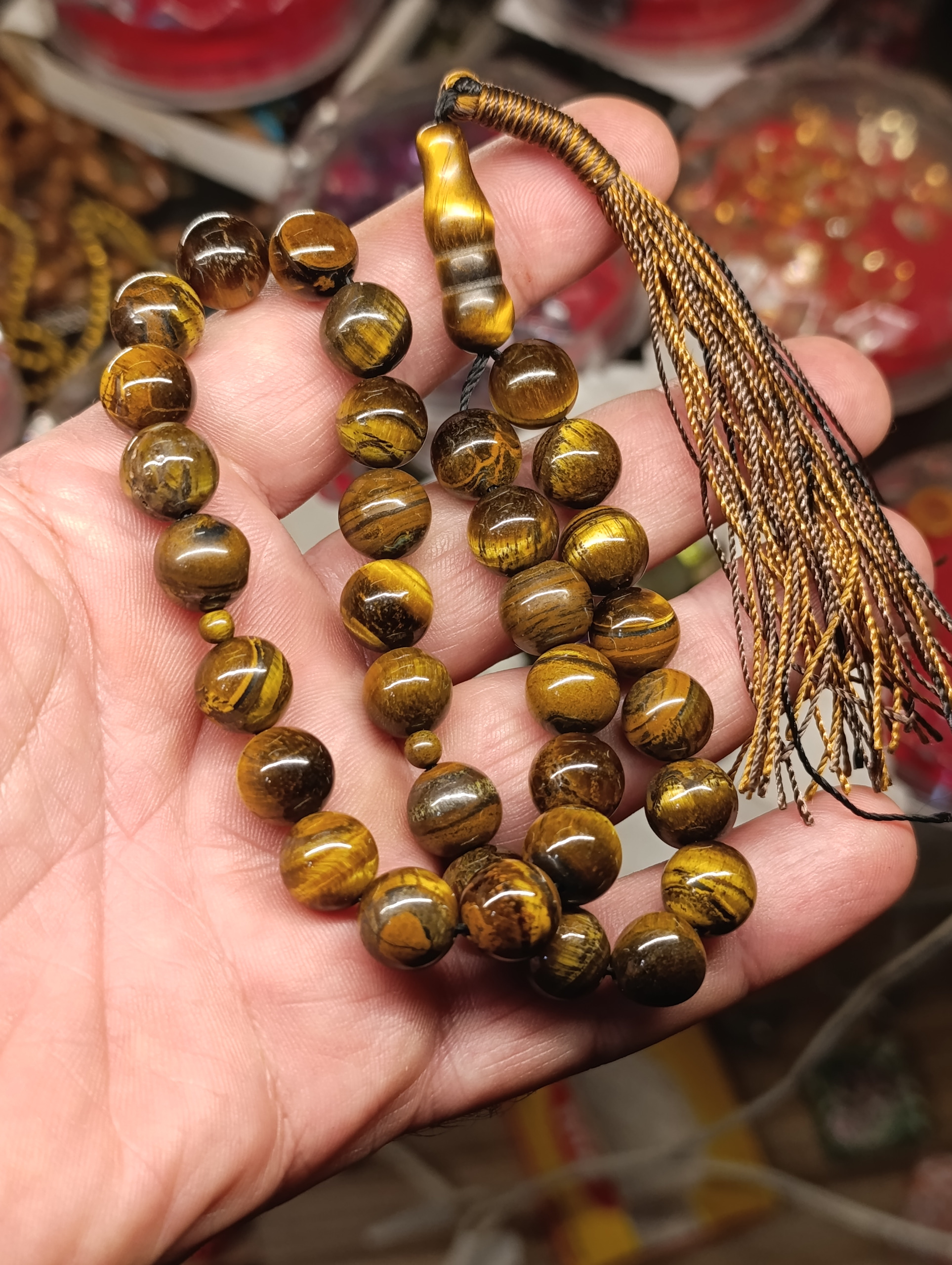 تسبیح سنگ اصلی چشم ببر فوق زیبا. طبیعی