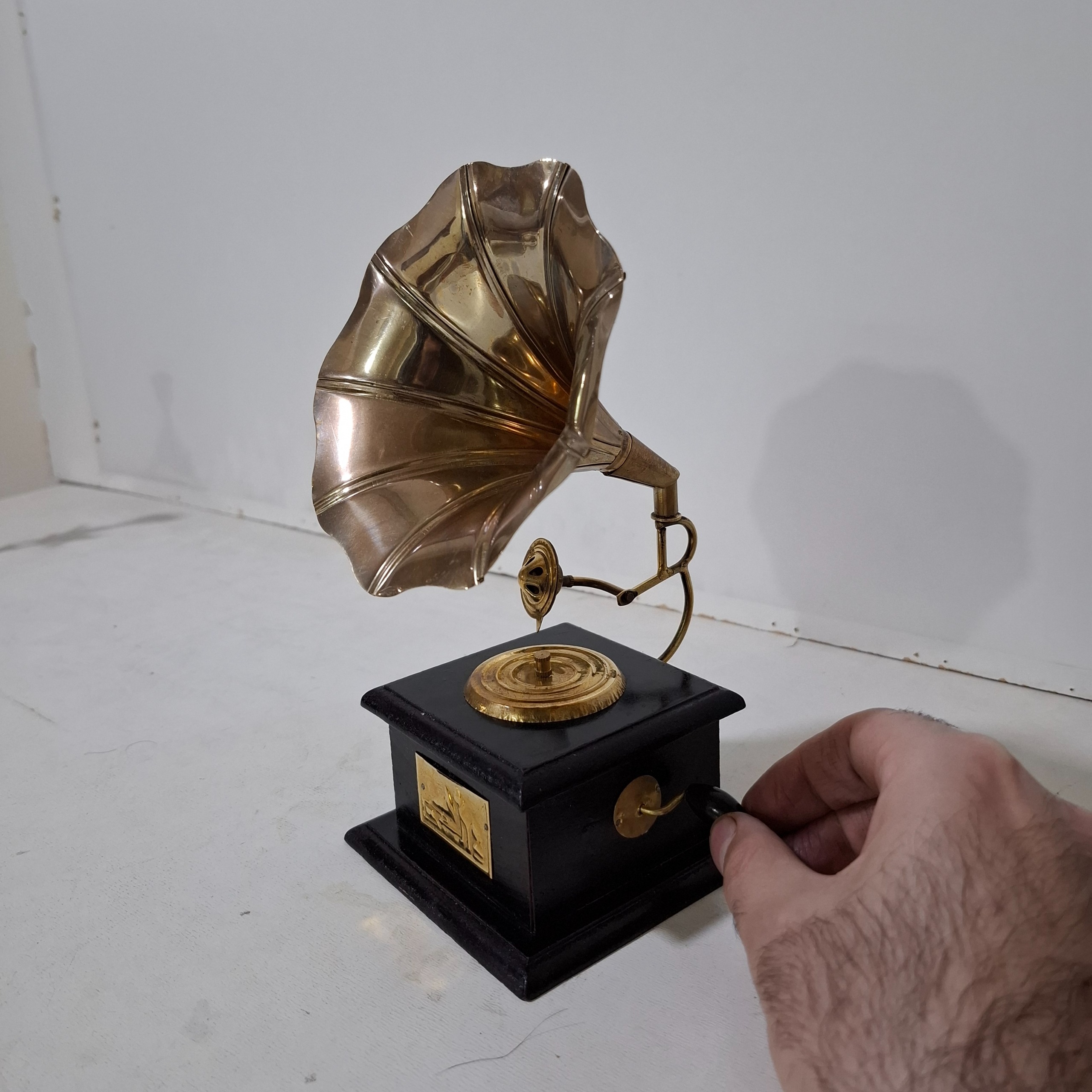 گرامافون کوچک تزیینی ساخت هند برنجی با کیفیت بسیار بالا و سنگین با سطح کیفیتی درجه یک بسیار زیبا و آنتیک