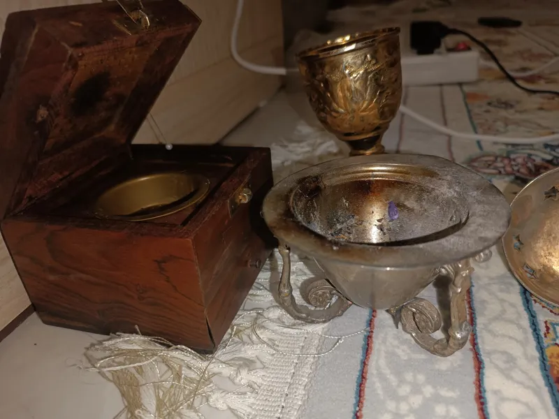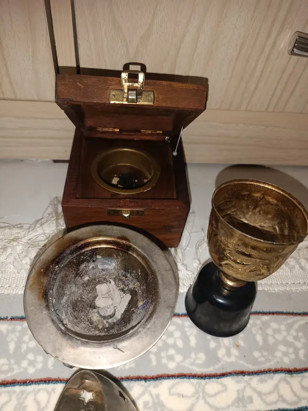 همانطور که در تصاویر مشاهده میشود دو تا جاعودی فلزی که یکی شوم پایه آهنی مشکی داره و سری آن برنجی است و دو تا جاعودی دیگه یکی چوبی قدیمی و دیگری فلزی نسبتا سنگین جنسش را دقیقا نمیدونم ولی آهن نیست...دو تا جاعودی فلزی و چوبی استفاده شده هستن و مقداری سیاه شدگی دارند که باید وقت گذاشته شود که تمیز شوند و اندازه شون هم در عکس چهارم داخل دست مشخص هست ظاهر و باطن در عکسها مشخص هست کمی قرشدگی جاعودی فلزی داره که مشخص نیست....قیمت جهت کل مجموعه یکجا سه میلیون تومان هست با پست رایگان