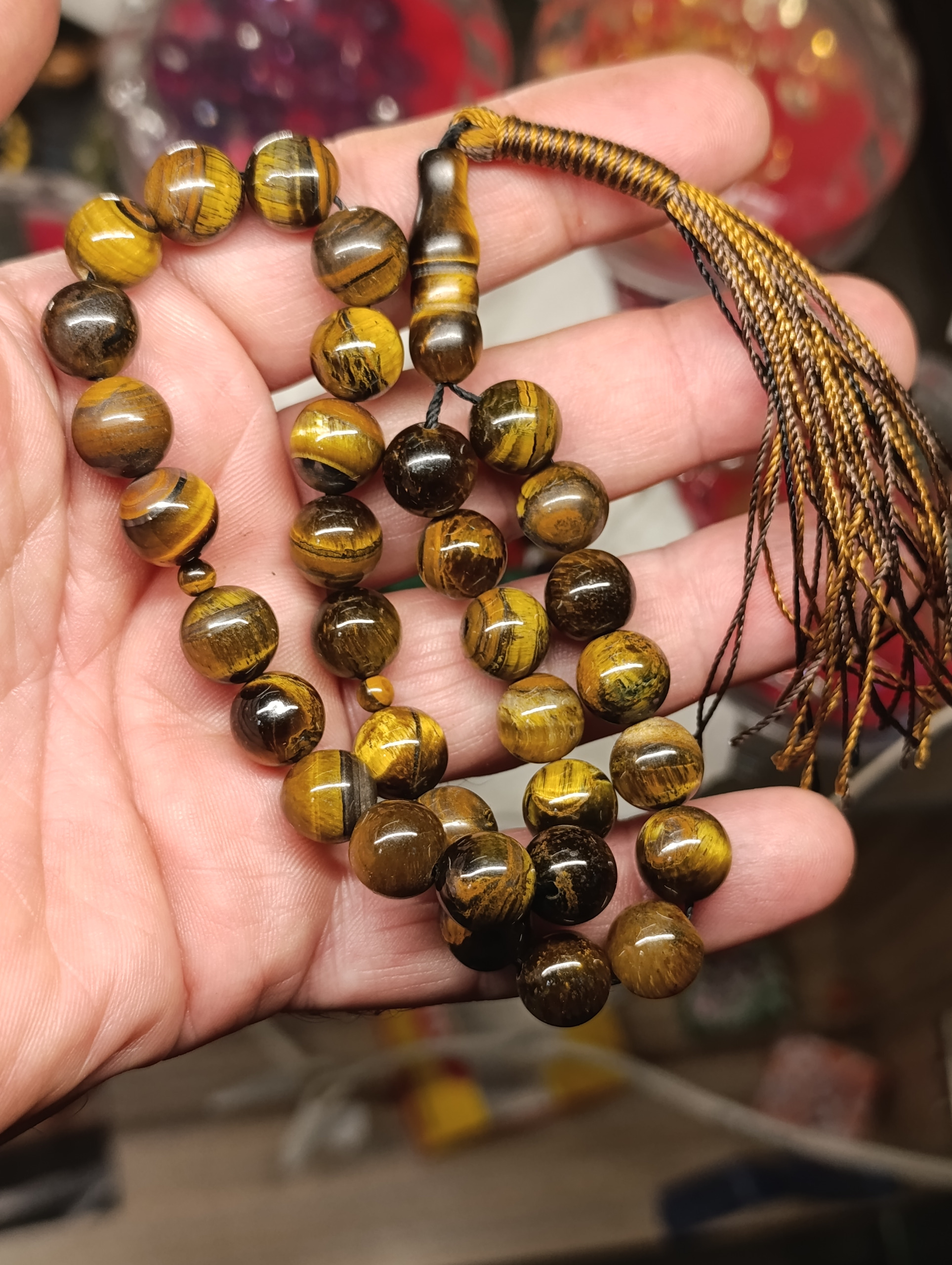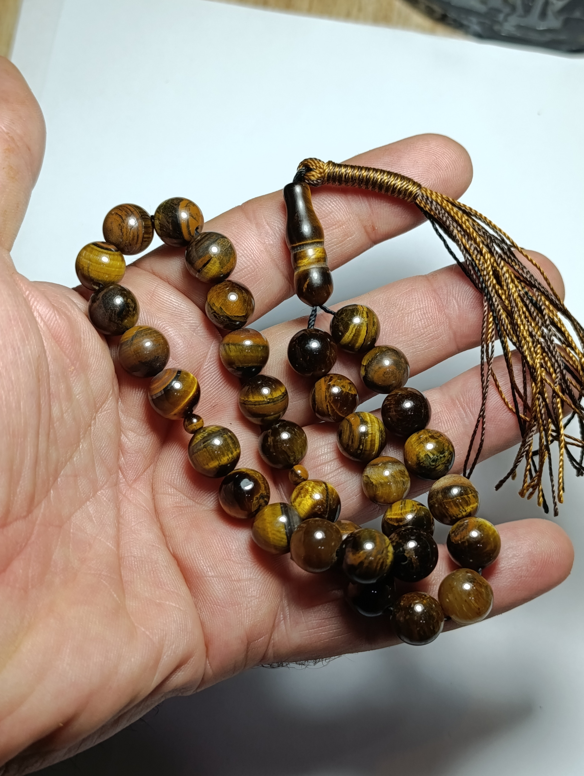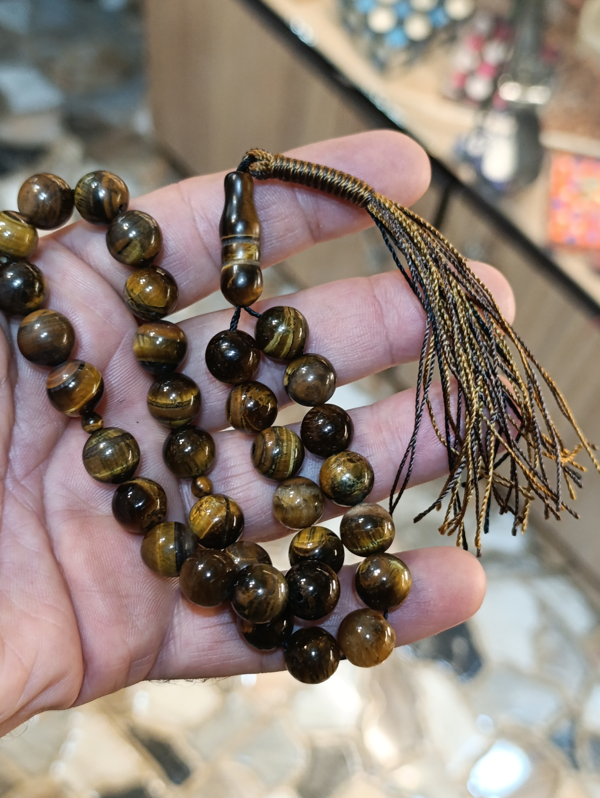 تسبیح سنگ اصلی چشم ببر فوق زیبا. طبیعی