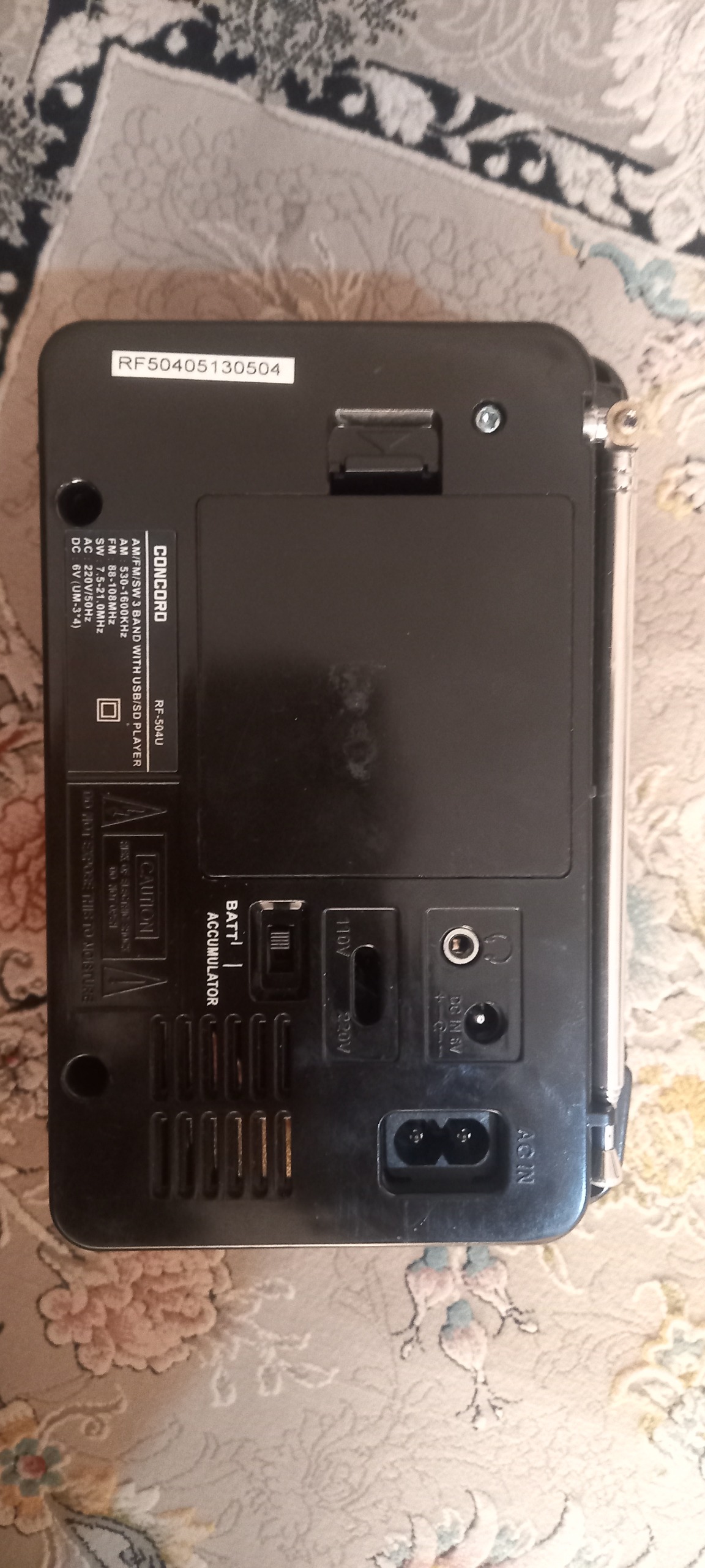 رادیو سه موج فلشخور سالم ققط باتری خراب شده ولی به آداپتور و برق شهر وصل میشه باتری قلمی هم میخوره