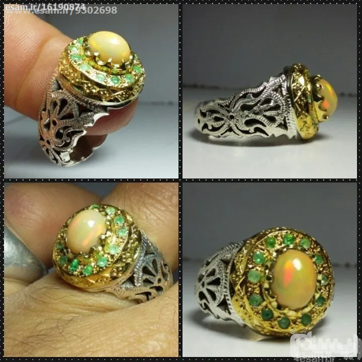 اوپال شیری طلعلوعالی مرصع کاری با 12عدد زمردزامبیاشبکه زنی واره کاری منظم هنردست عیار925سایز65