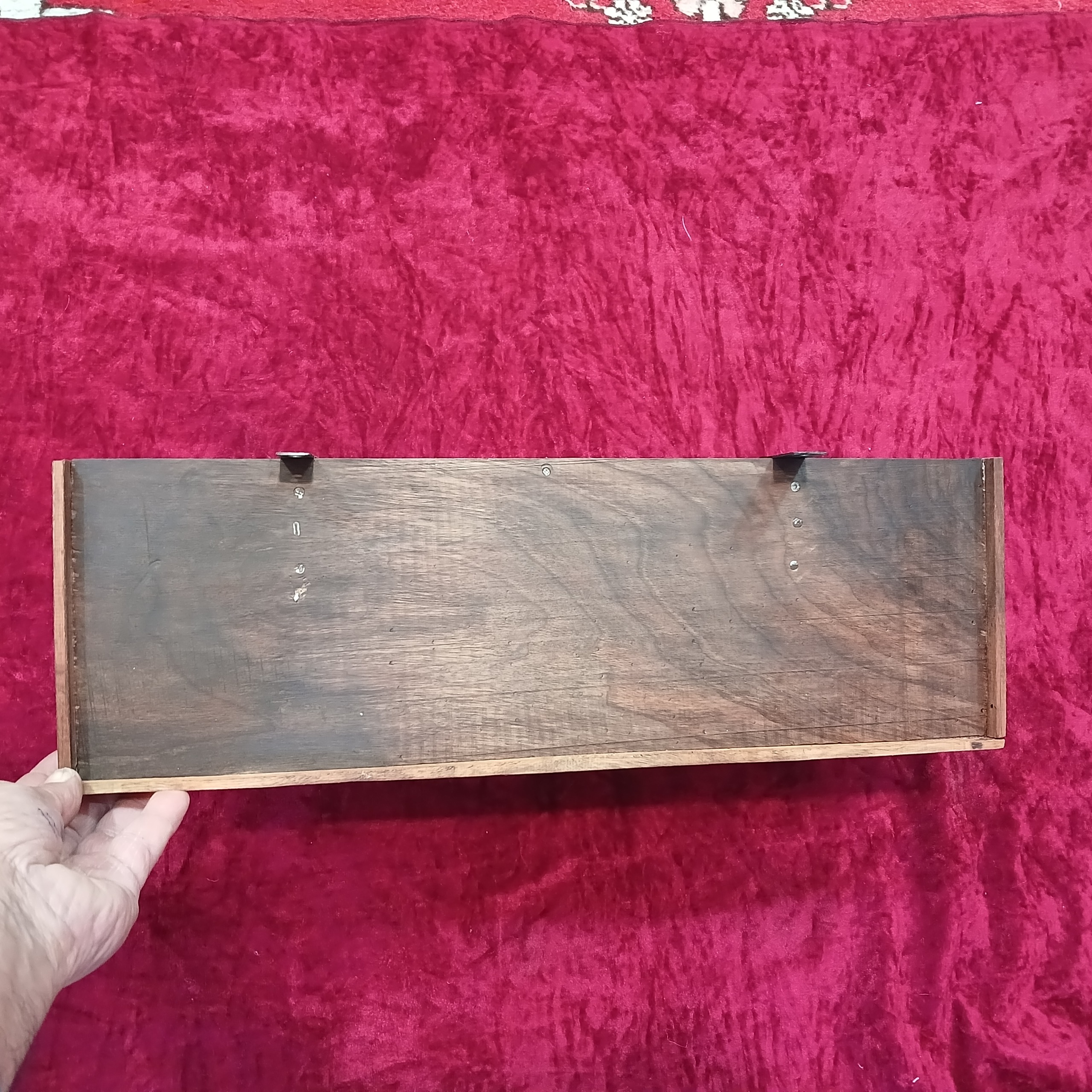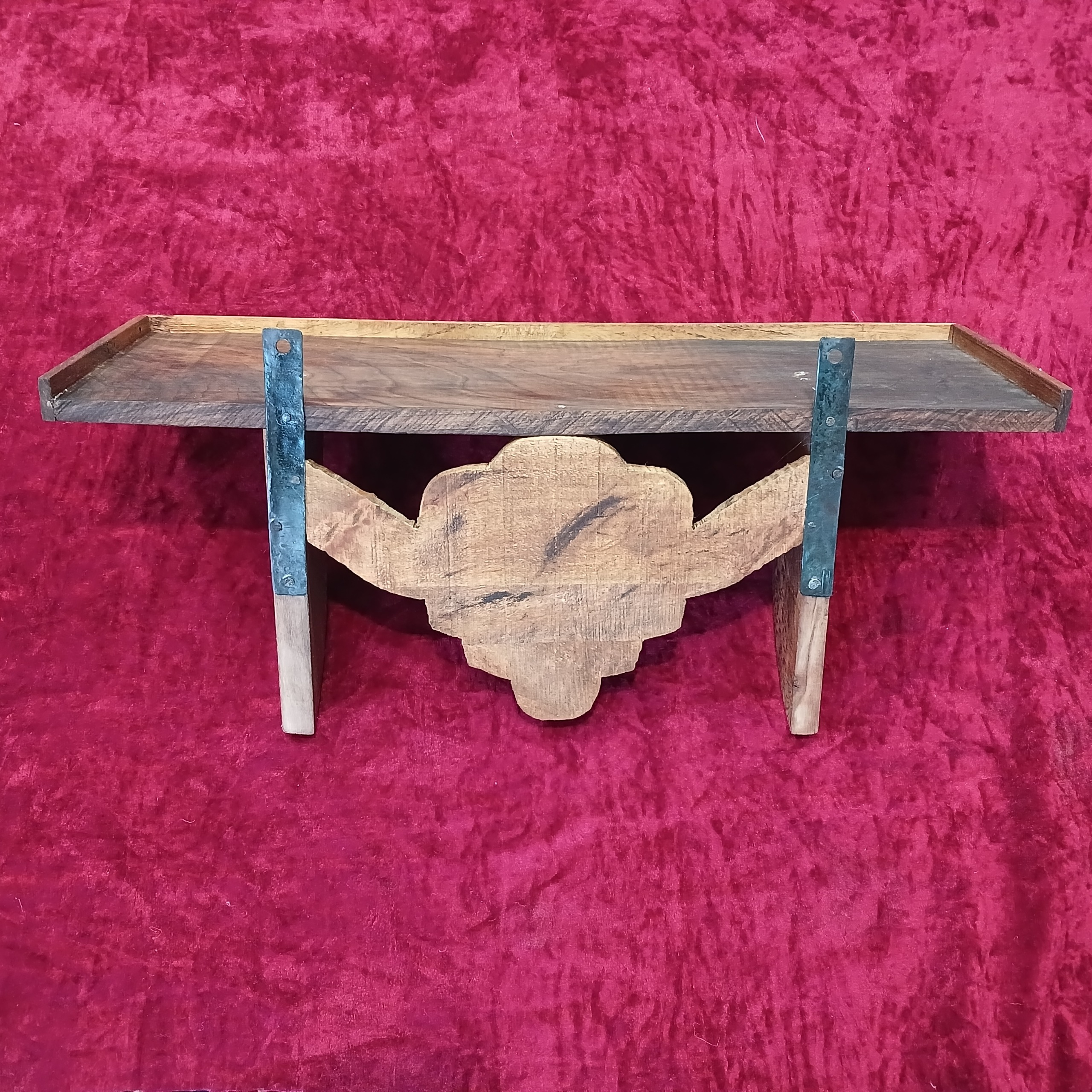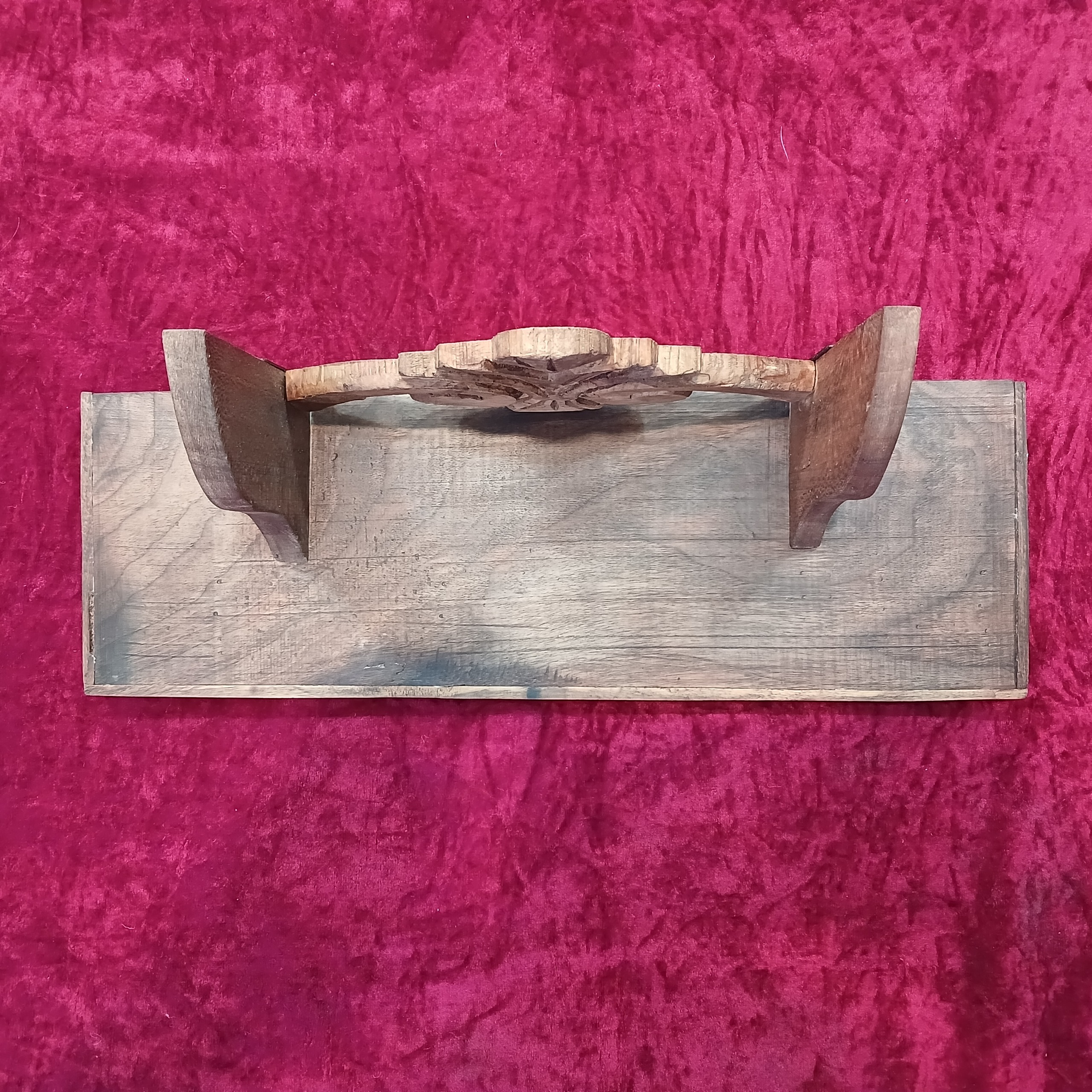 طاقچه چوبی دست ساز سالم و بدون ایراد قابل استفاده کلکسیونی ساخته شده از چوب گردو مناسب برای خانههای قدیمی و تاریخی کار نجار مراغه ای اندازه 45×15 و ارتفاع 17 سانت.