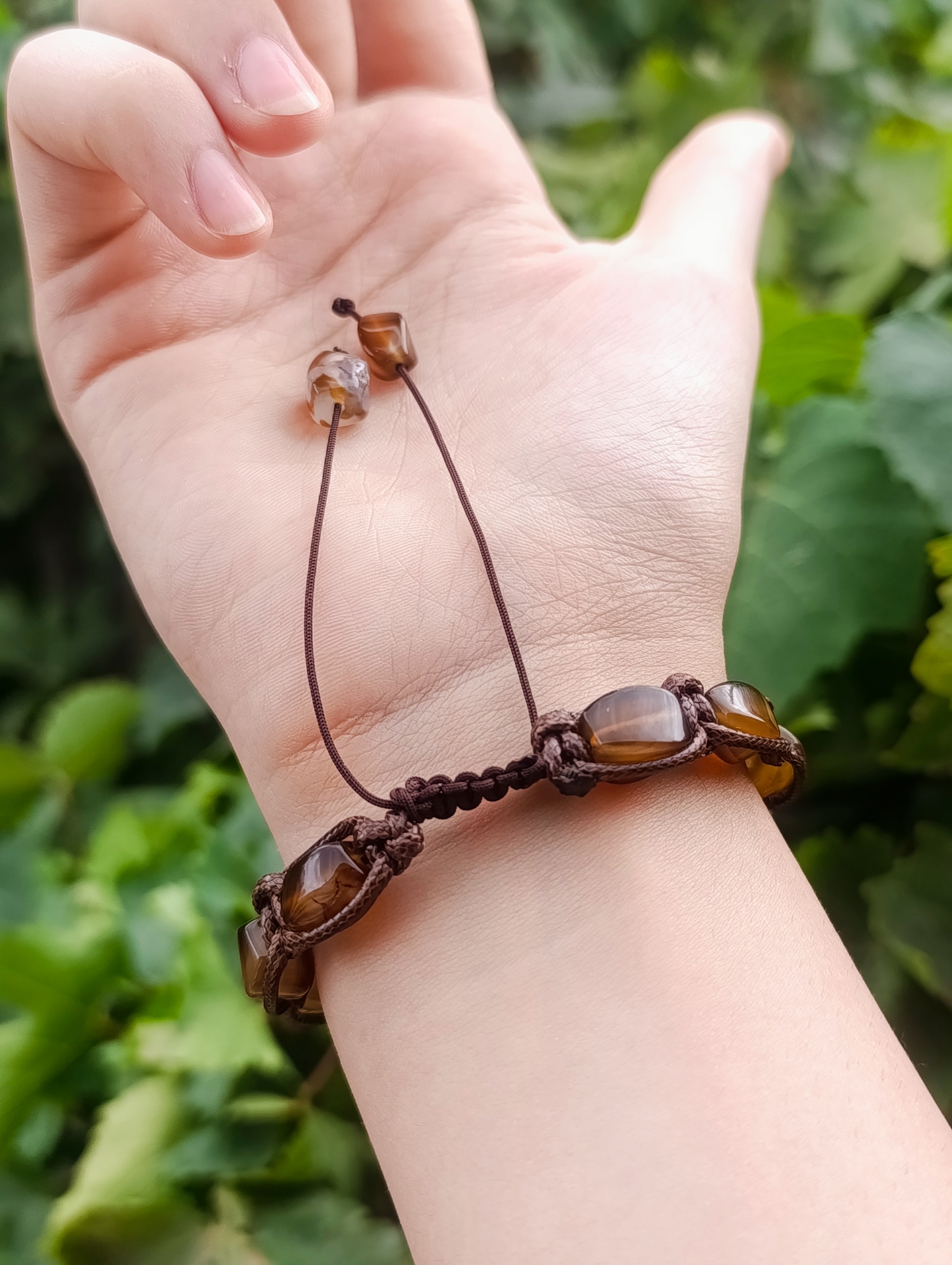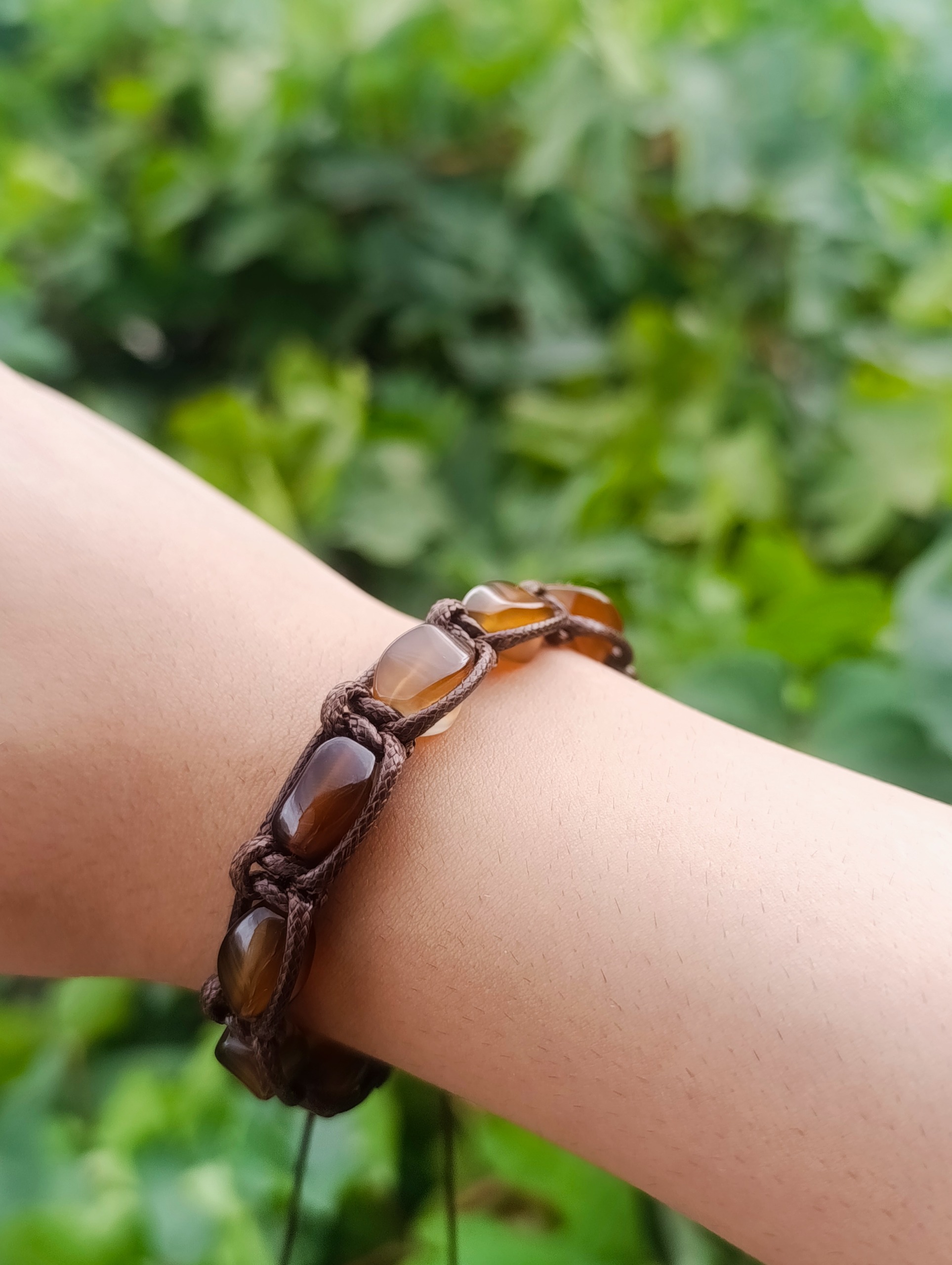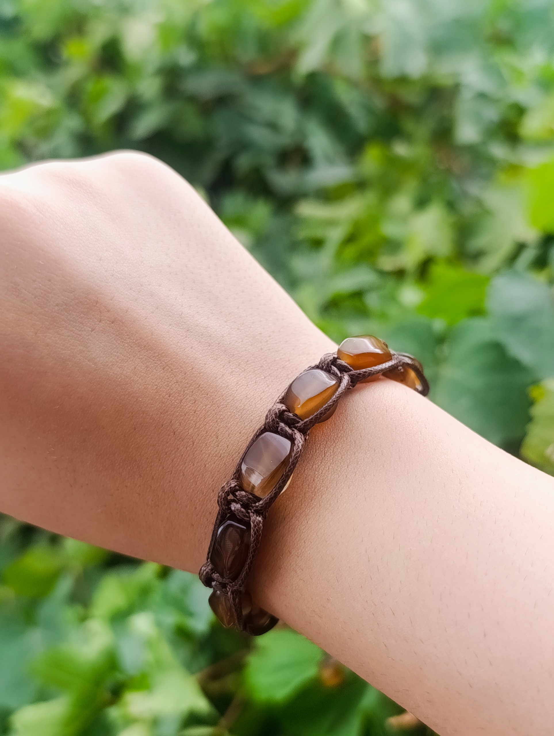 دستبند مردانه سنگی عقیق معدنی با بافت چرم