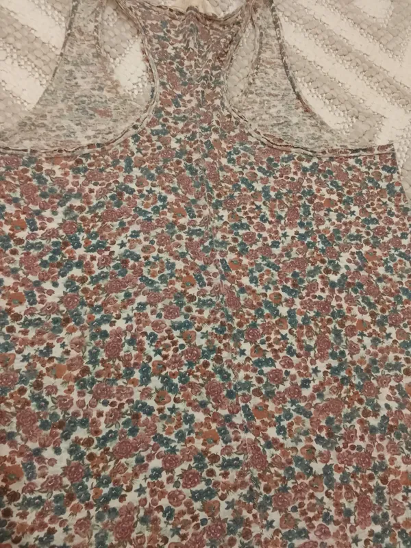 تاپ رکابی نخی بلند زنانه دخترانه فری سایز گلدار گل گلی کرم زشکی سبز قد 50