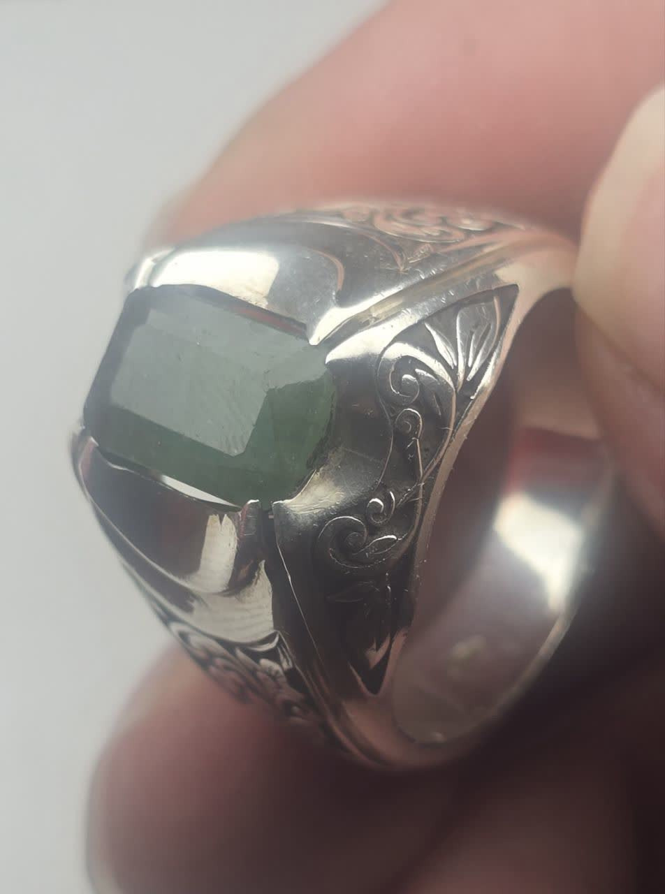 انگشتر نقره دستساز زمرد زامبیا قلمزنی