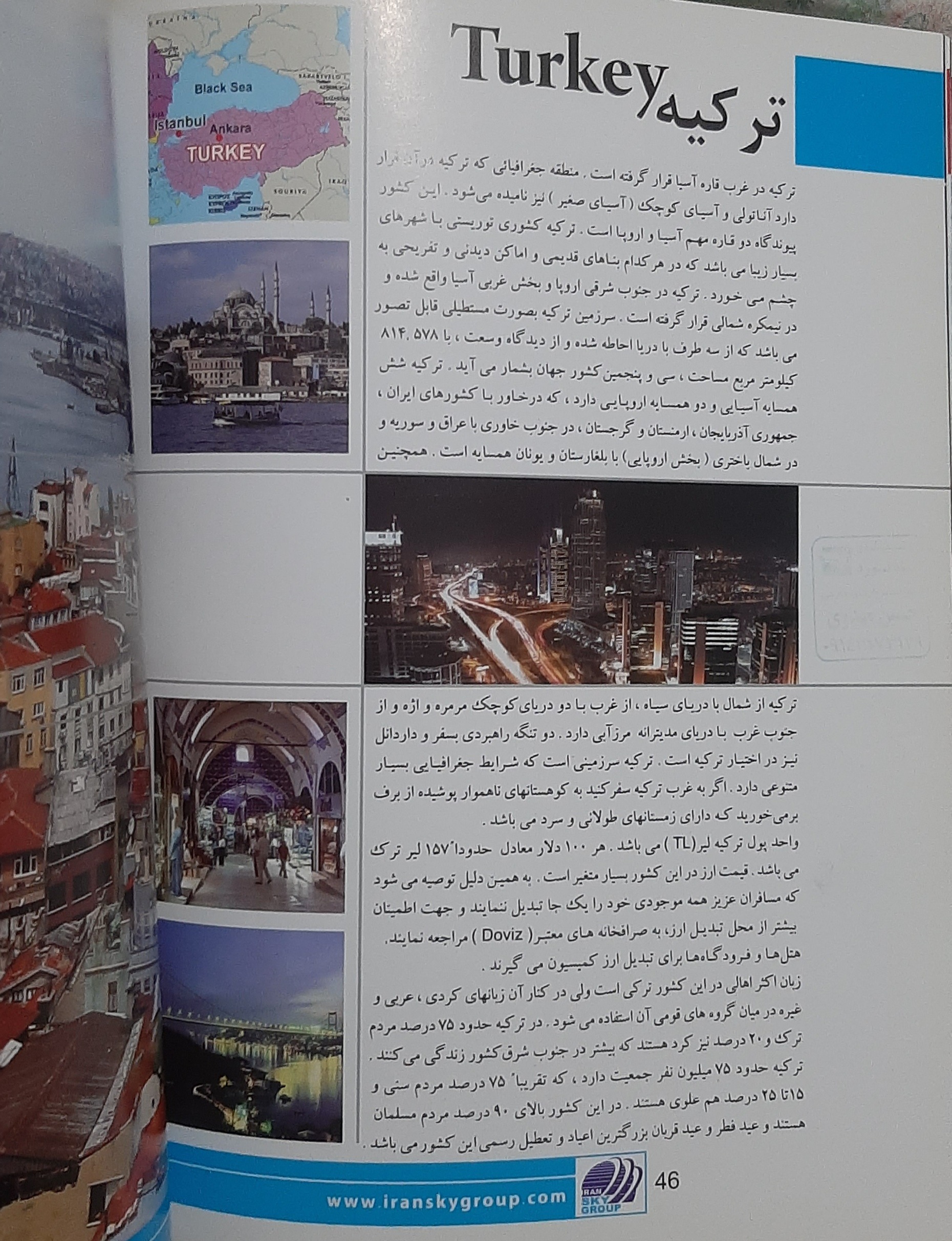 شامل مطالبی راجع به نکات ضروری سفر، نقشه ساعات کشورها، نقشه آب آب هوای جهان،ک راهنمای کشورهای تونس،چین، ترکیه، هند، تایلند، آفریقای جتوبی، مالزی،سنگاپور، قبرس، دبی، سریلانکا و ...