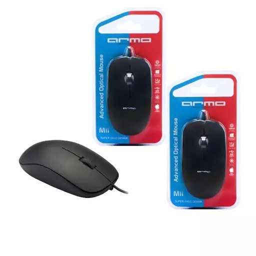 ماوس سیم دار آرمو مدل m11، با طراحی زیبا و ساده خود همچینین ساختاری مناسب با ارگونومی دست میباشد. ک از حسگر اپتیکال با حساسیت 1000dpi بهره مند میباشد.