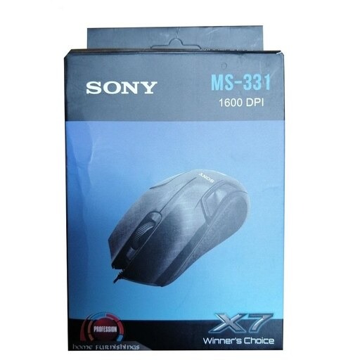 ماوس MS-331 سری x7 محصول شرکت SONY است که به وسیلهی پورت USB به کامپیوتر وصل میشود. حسگر این ماوس از نوع اپتیکال (نوری) که برای مصارف اداری و خانگی و انجام کارهای روزمره مناسب است و دقتی معادل با 1600DPI دارد تا ریزترین حرکات را شناسایی کند. پلاستیک استفاده شده در بدنه ی این محصول، کیفیت قابل قبولی دارد.