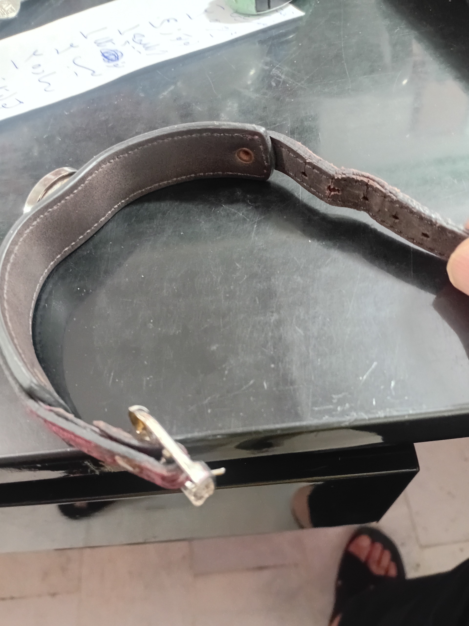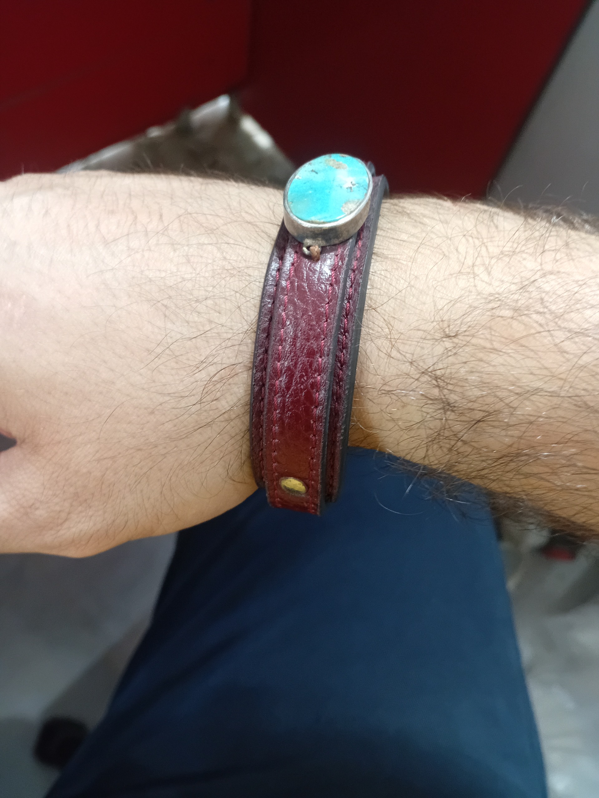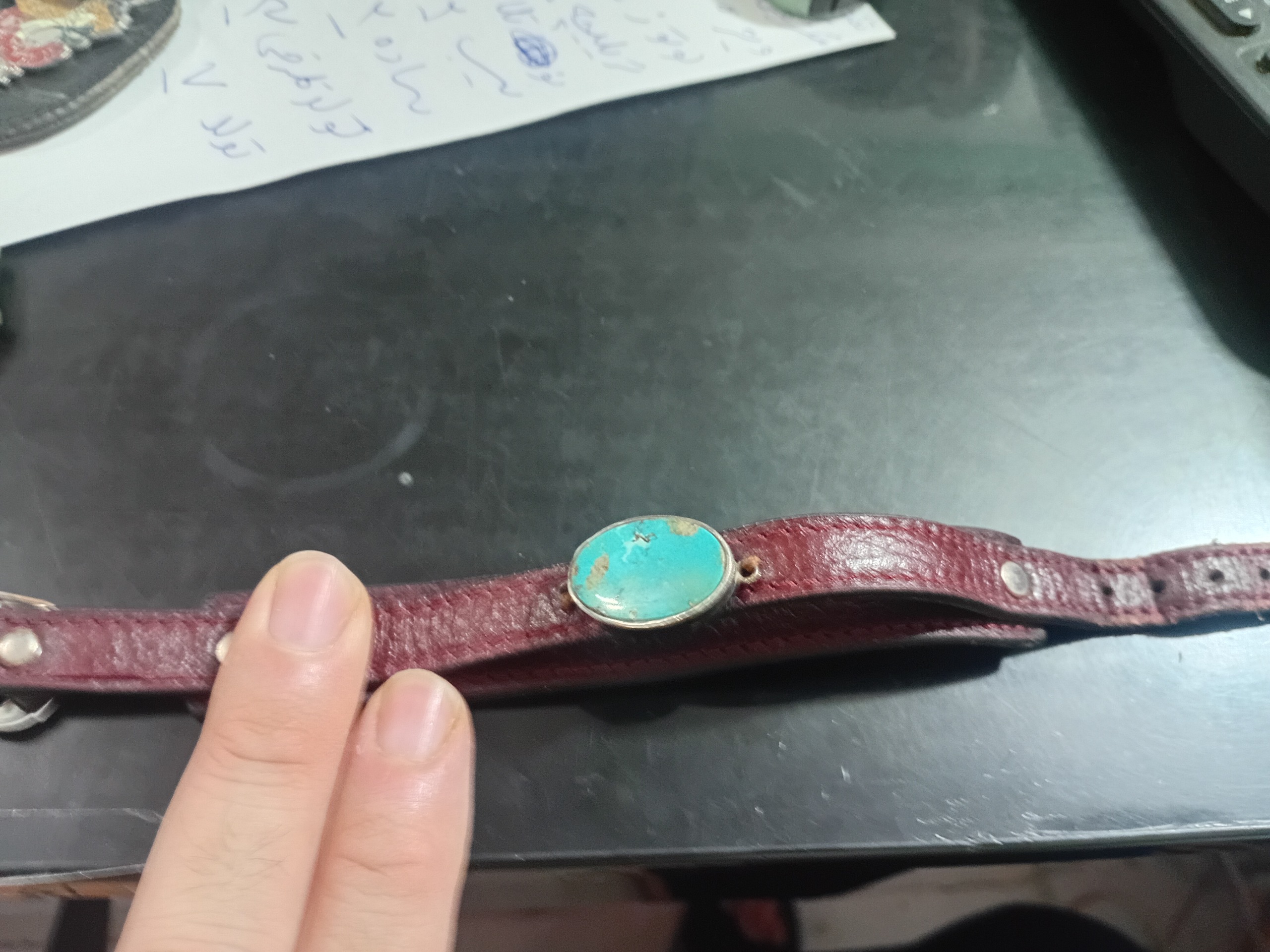 دستبند چرمی با نگین فیروزه نیشابور و قاب نقره