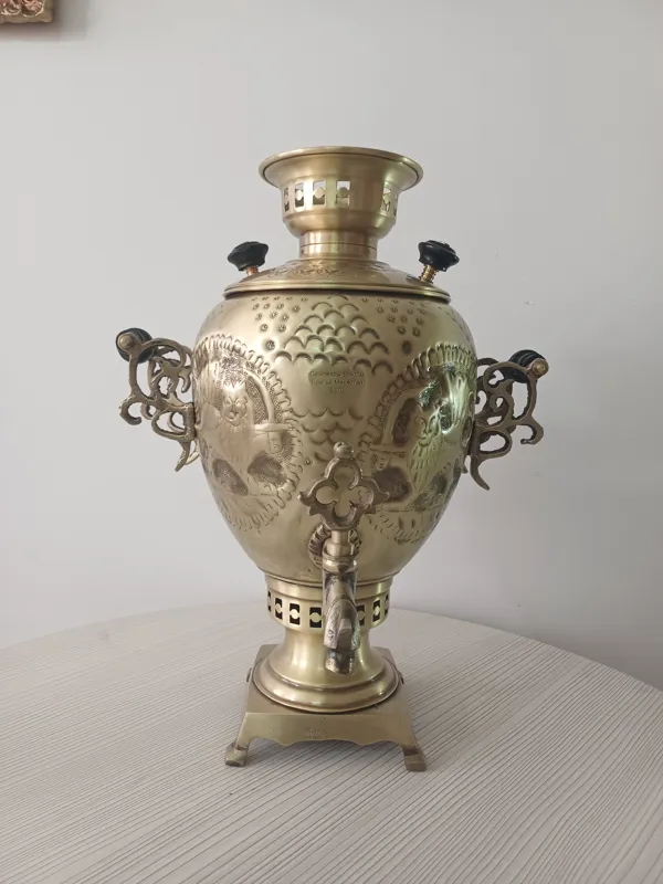 سماور زغالی برنجی مدل تخم مرغی قلمکاری شده نانو
