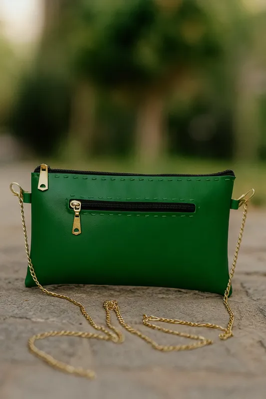 « کیف دوشی زنانه سبز با جنس چرم مصنوعی و طراحی جذاب، همراهی شیک برای استایل روزمره شماست.