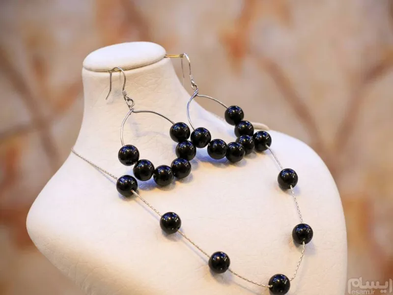 مزایده نیم ست نقره و سنگ عقیق سیاه دستساز