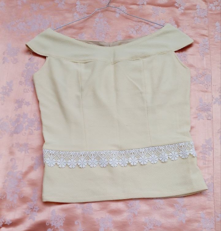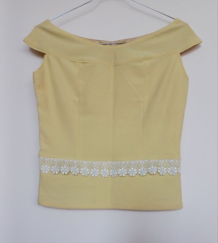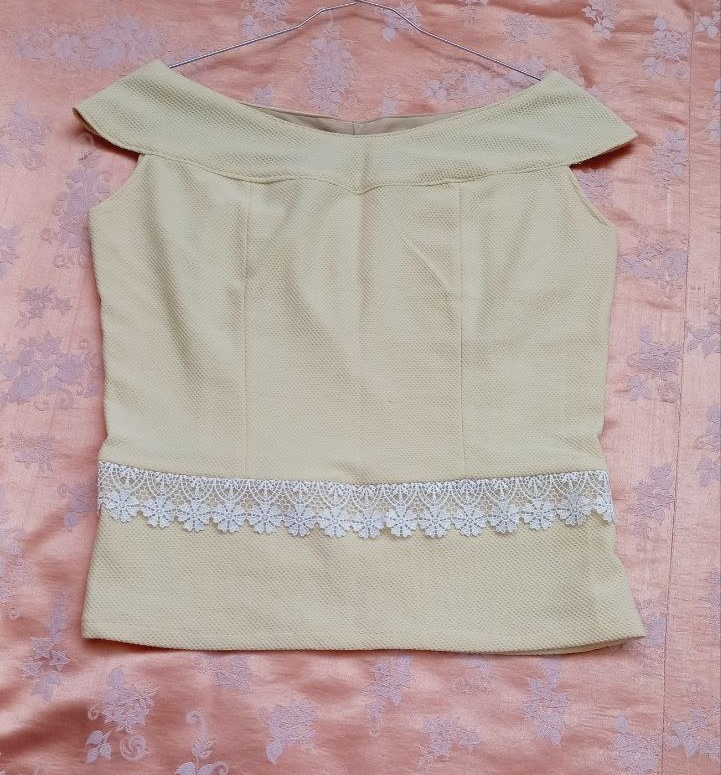 تاپ یقه قایقی هست مزون دوخته و کلا یک بار در یک مجلس پوشیده شده است