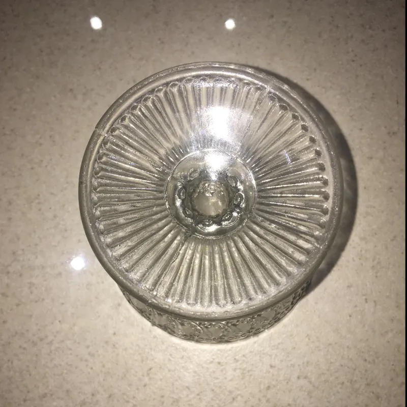 جنس: کریستال (که از ضربه زدن به ظرف و طنین آوای خوش آن مشخص می شود)