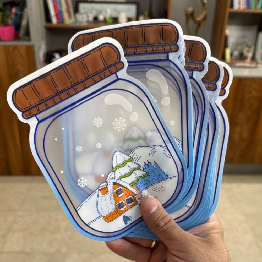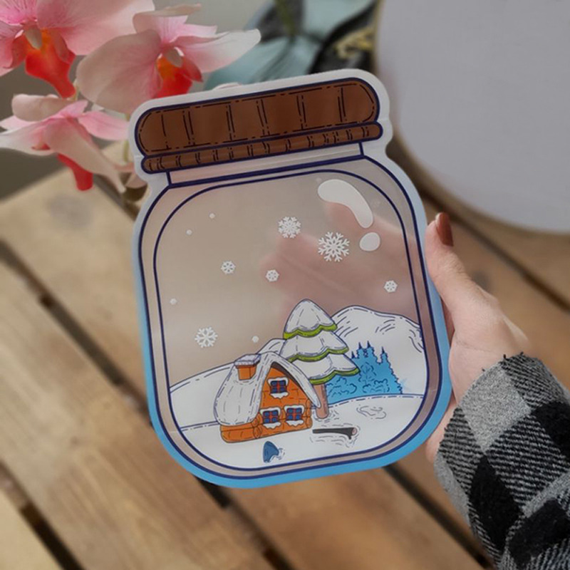 زیپ کیپ طرح برفی ، نمونه ای جدید با شمایل ظاهری خاص و منحصر به فرد شبیه به یک بانکه شیشه ای می باشد . ظاهر جذاب کالا با طراحی منظره برفی بر روی آن زیبایی دوچندانی را به خود گرفته ، بنابراین می توان از این بانکه به عنوان گزینه ای سلیقه پسند برای افراد مختلف با سلایق متفاوت یاد کرد . ابعاد زیپ کیپ طرح شیشه ، برابر با 18 سانتی متر ارتفاع و پهنای 13 سانتی متر می باشد ، بنابراین مناسب جهت نگهداری خوراکی هایی نظیر تنقلات ، آجیل و تخمه برای کودکان و یا حتی نگهداری مواد غذایی کوچک نظیر ادویه جات داخل آشپزخانه خواهد بود . زیپ کیپ طرح شیشه حبوبات ارائه شده در بسته بندی پنج عددی است که حمل و جابه جایی آسان آن ، امکان استفاده از این محصول داخل مدرسه ، محیط های آموزشی کودکان ، سفر ، کمپ و ... برای جای دادن خوراکی و مواد غذایی در حجم کم (متناسب با ابعاد کالا) را فراهم آورده .