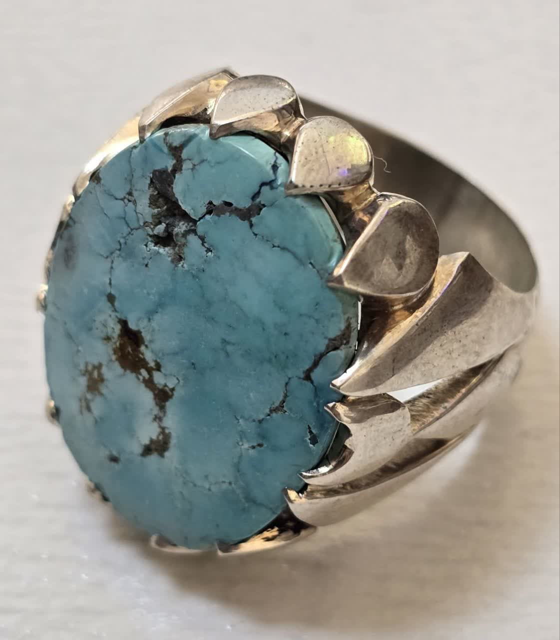 انگشتر نقره دستساز فیروزه نیشابور درشت و زیبا