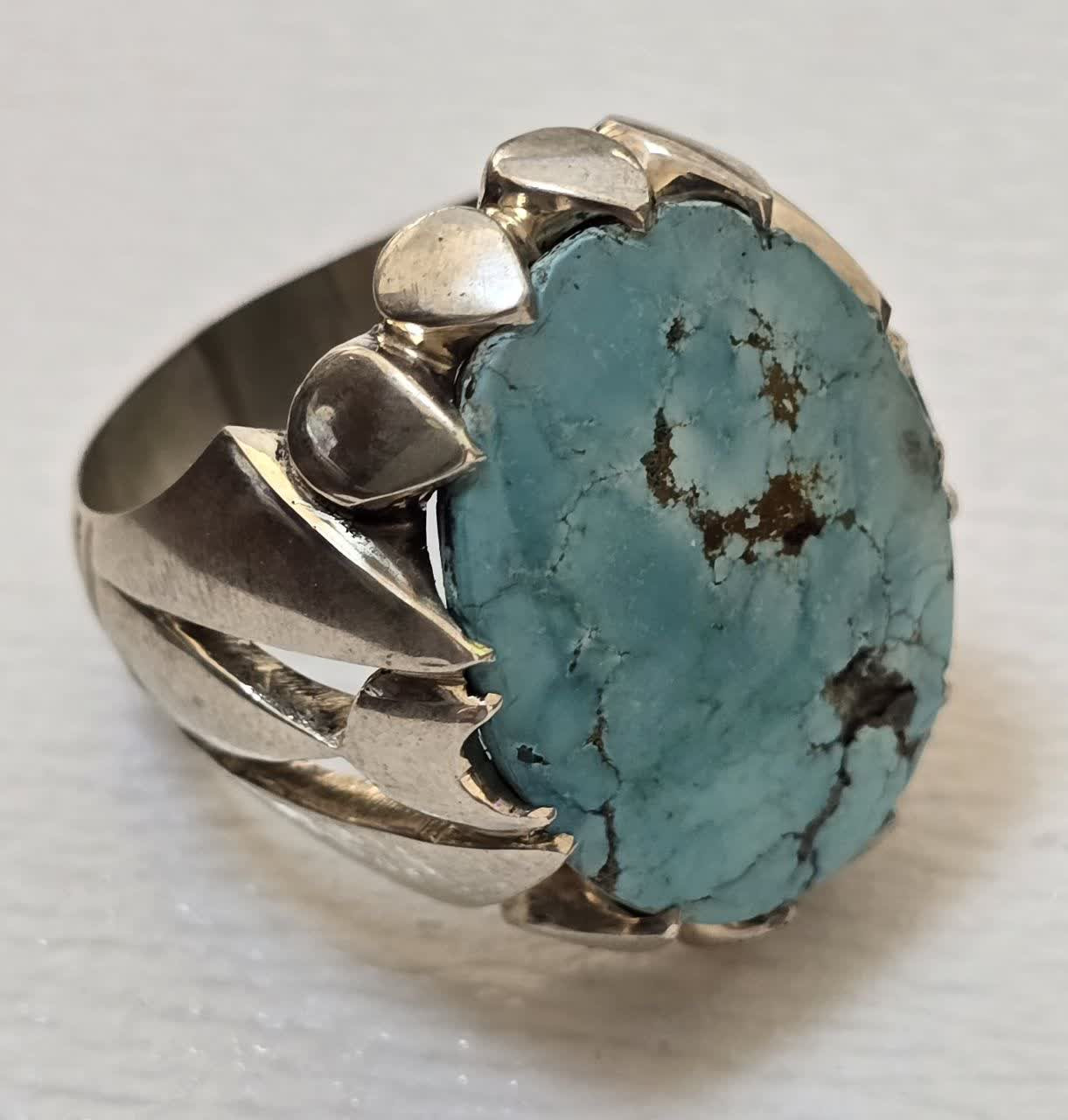 انگشتر فاخر تمام دستساز نقره فیروزه نیشابور رنگ عالی زیبا سایز بزرگ ساخت استاد فلاح مهر نوین