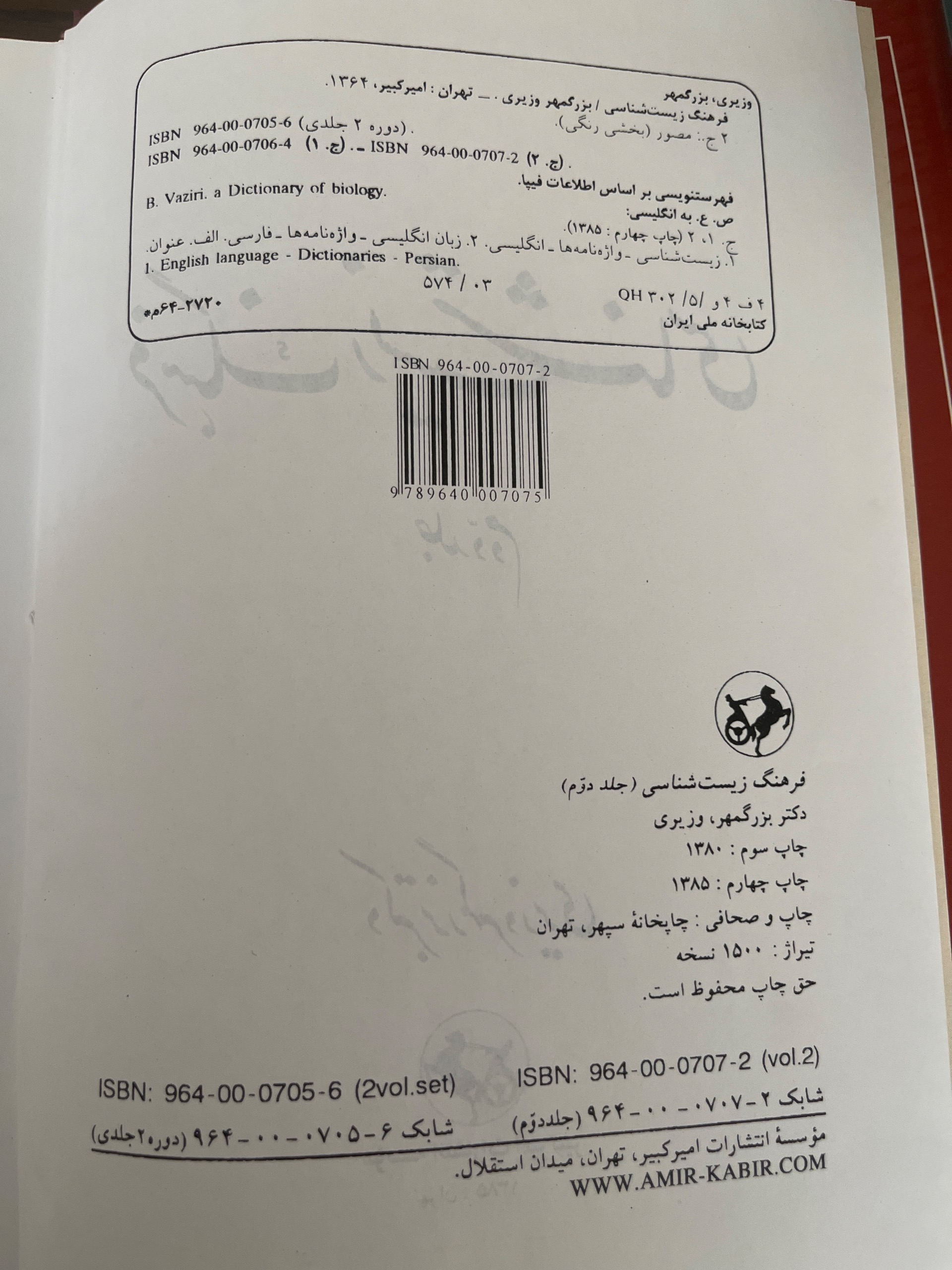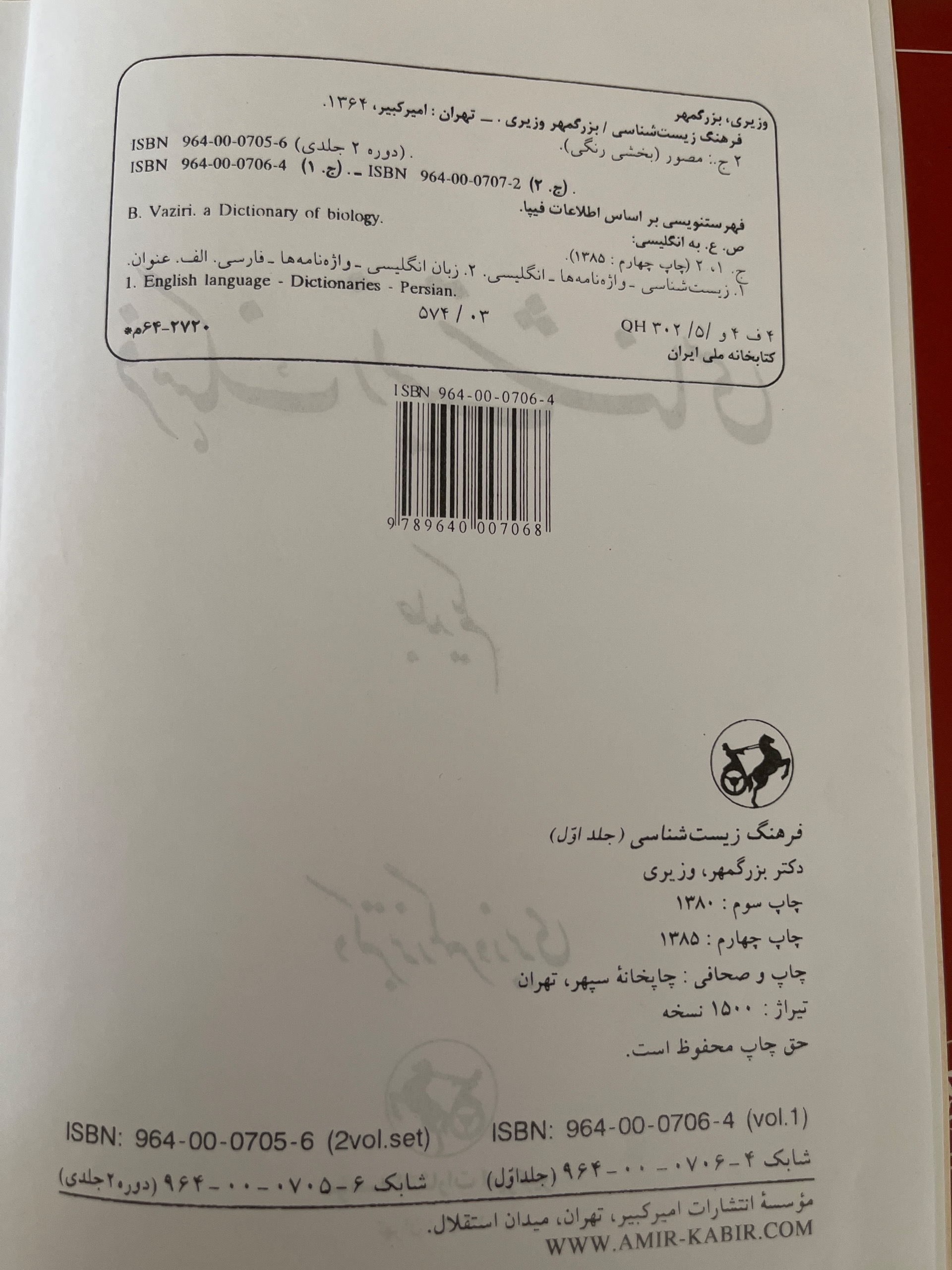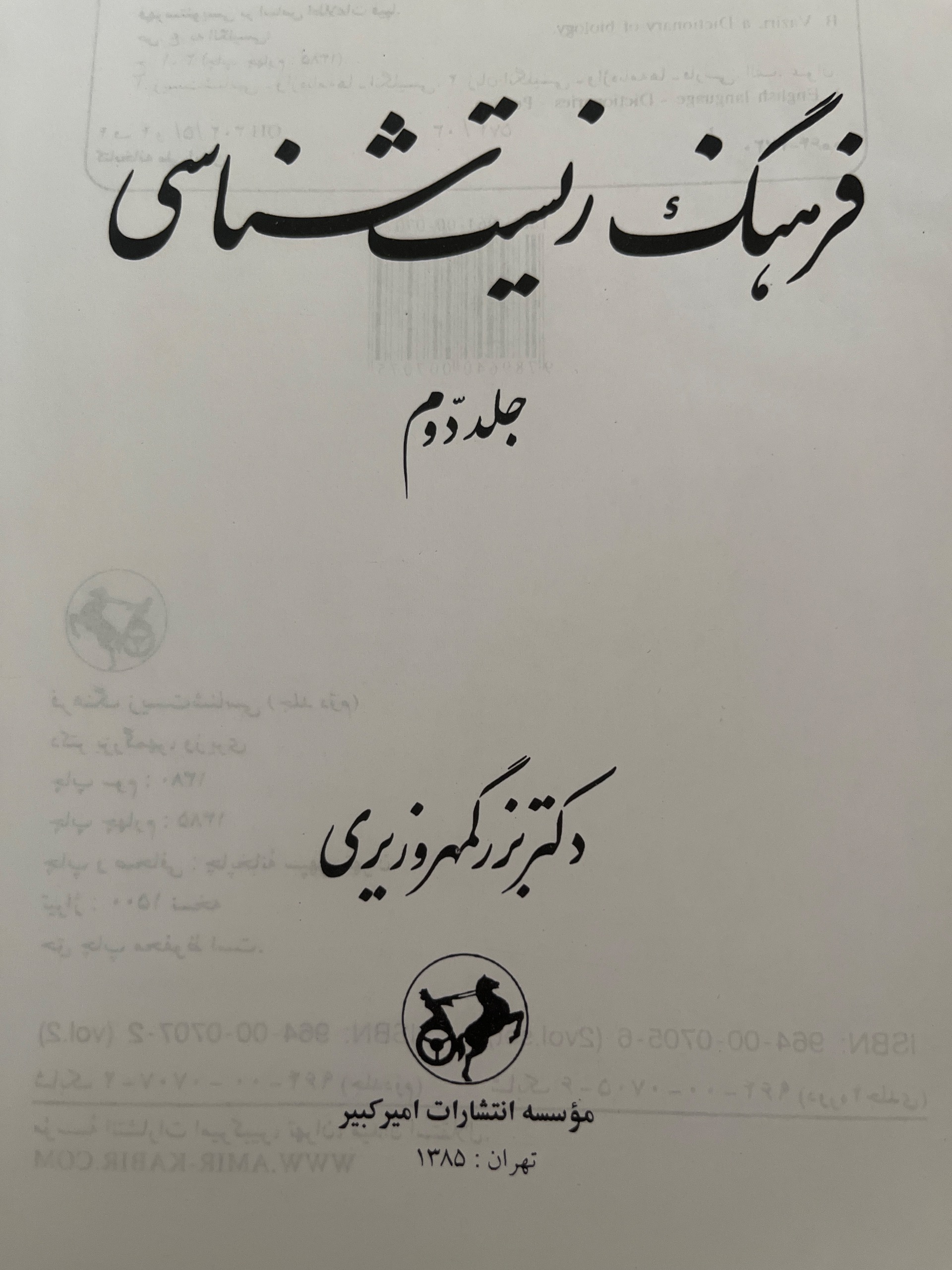 دوجلد کتاب فرهنگ زیست شناسی دکتر بزرگمهر وزیری