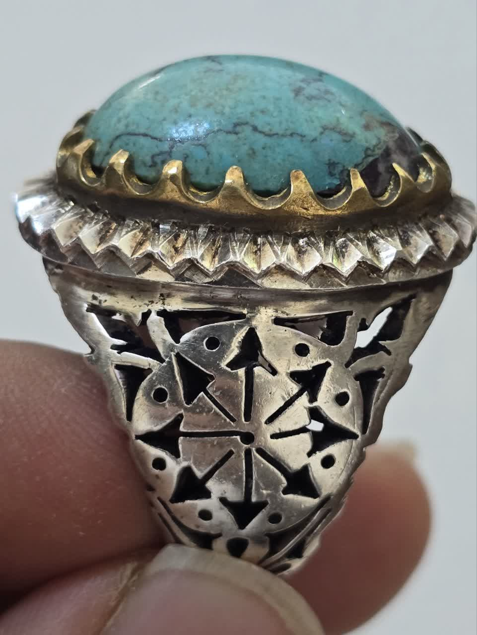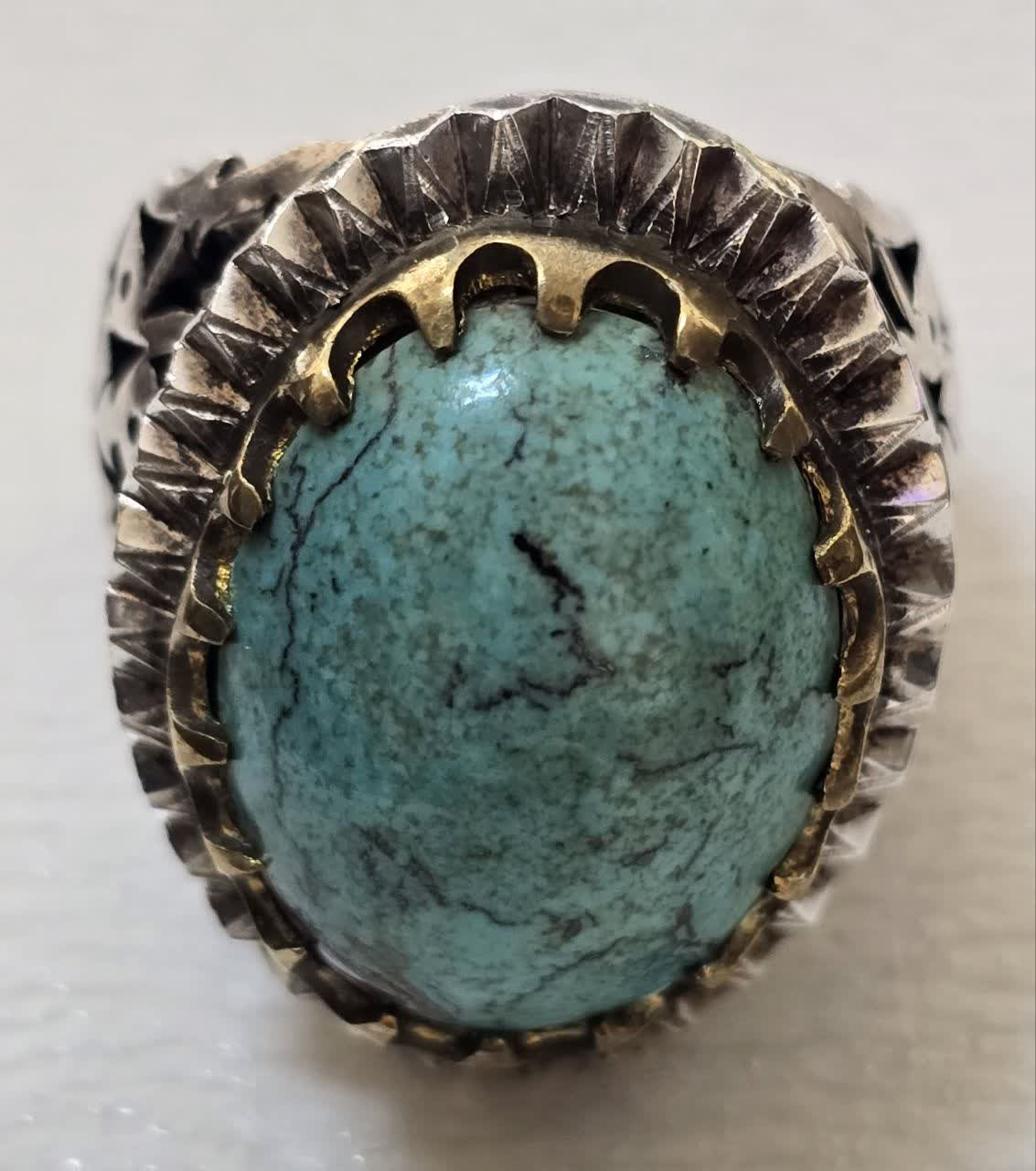 انگشتر نقره دستساز فیروزه نیشابور رنگ عالی