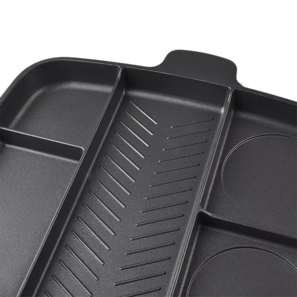 ماهیتابه مستر پن ، محصولی کاملاً کاربردی جهت استفاده در تمامی آشپزخانه ها است . این ماهیتابه دارای 5 محفظه با ابعاد مختلف به صورت مجزا می باشد که می توانید از آنها به صورت همزمان برای طبخ مواد غذایی گوناگون استفاده کنید ، بدون اینکه نیازی به بهره برداری از 5 ظرف مجزا وجود داشته باشد . به کارگیری چند ماهیتابه برای سرخ کردن مواد غذایی یعنی صرف زمان و انرژی در کنار کاهش تمرکز و دقت شما ، در حالی که ماهیتابه چند کاره مستر پن می تواند لذت یک آشپزی دقیق و کم دغدغه را برای شما به وجود آورد . جنس این ماهیتابه از آلیاژ آلمینیوم با پوشش داخلی نچسب بدون مواد مضر می باشد . ماهیتابه چند قسمتی مستر پن مناسب برای سرخ کردن ، گرم کردن ، گریل و تفت دادن همزمان 5 ماده غذایی به صورت مجزا می باشد.