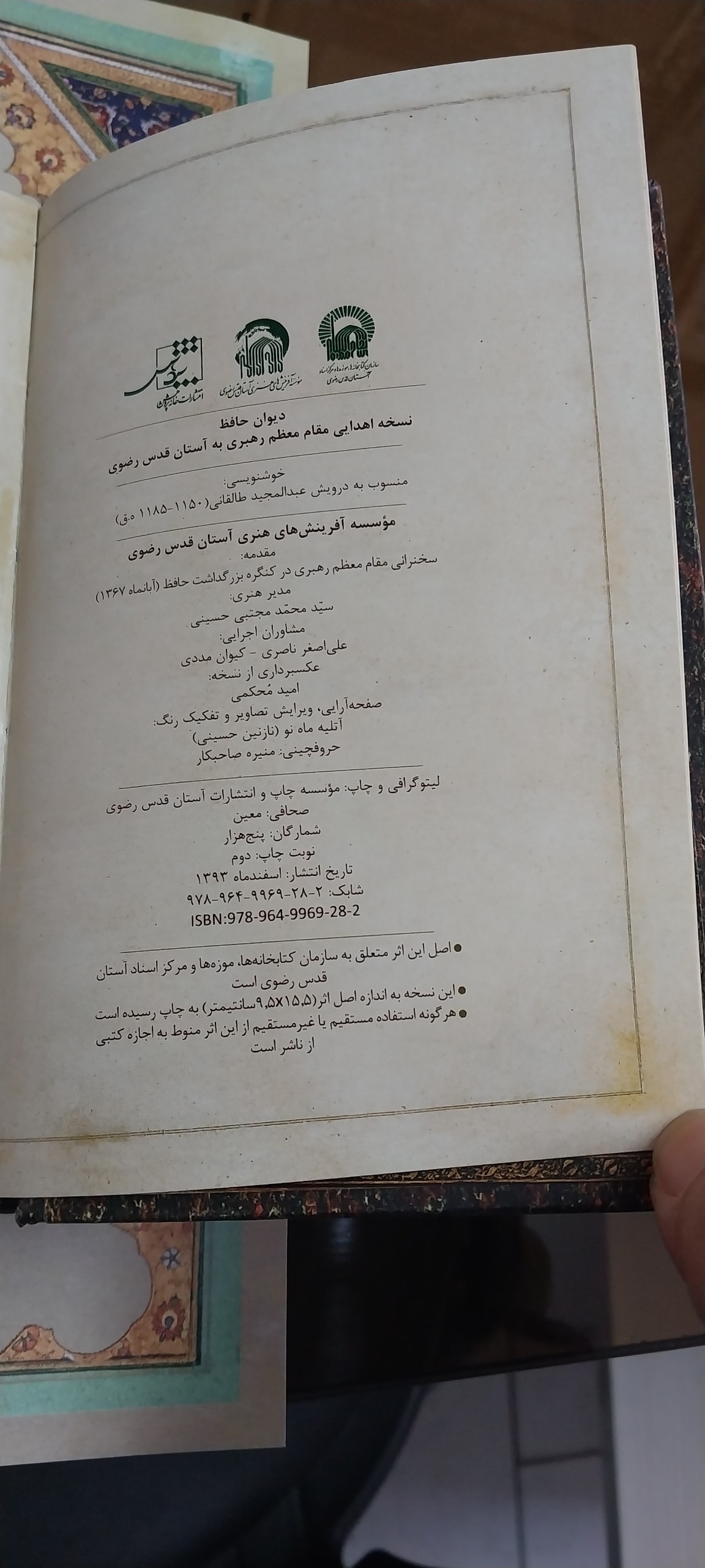 کتاب حافظ بخط استاد مرحوم عبدالمجید درویش