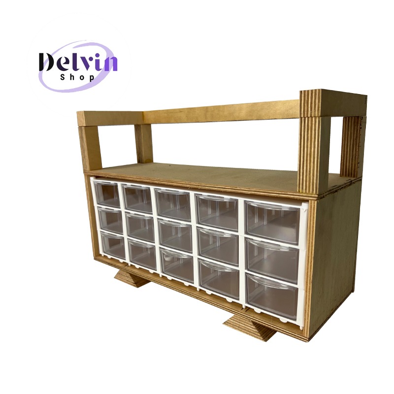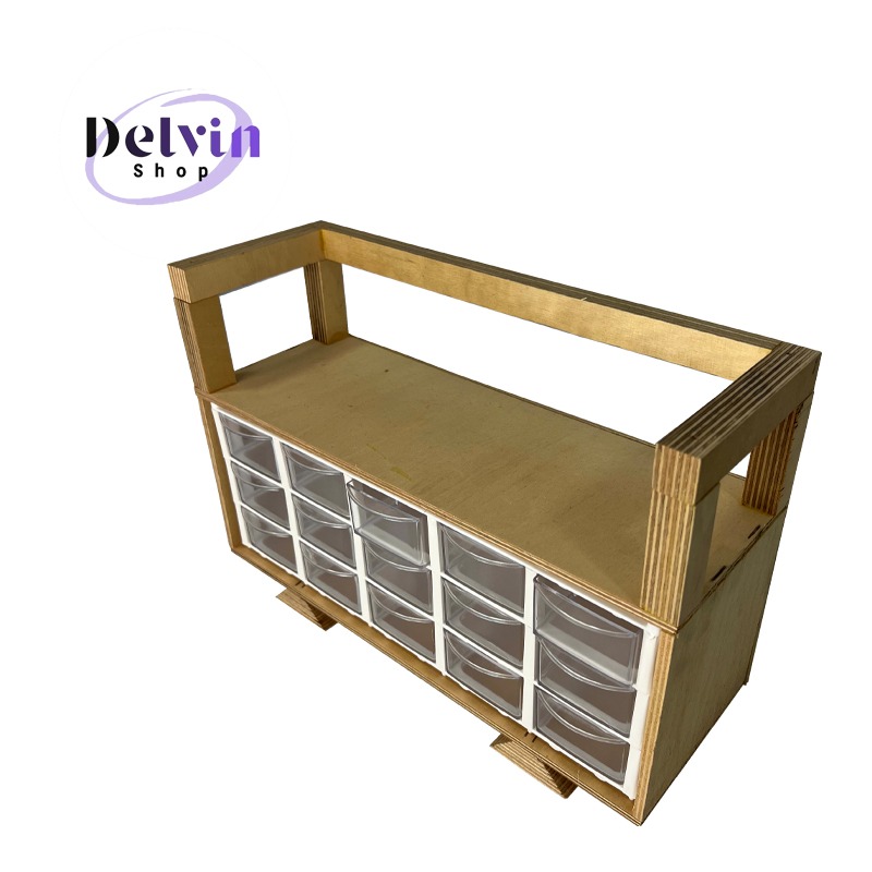 استند چوبی با فایل 15 کشو، محصولی کاربردی و زیبا با ابعاد 34×23 سانتیمتر است که با کشوهای جادار 12 سانتیمتری و قسمت بالایی مخصوص استند، مناسب نگهداری انواع لوازم تحریر، جواهرات و ابزار است. ساخته شده از چوب ضد رطوبت و قابل شستوشو، این استند انتخابی ایدهآل