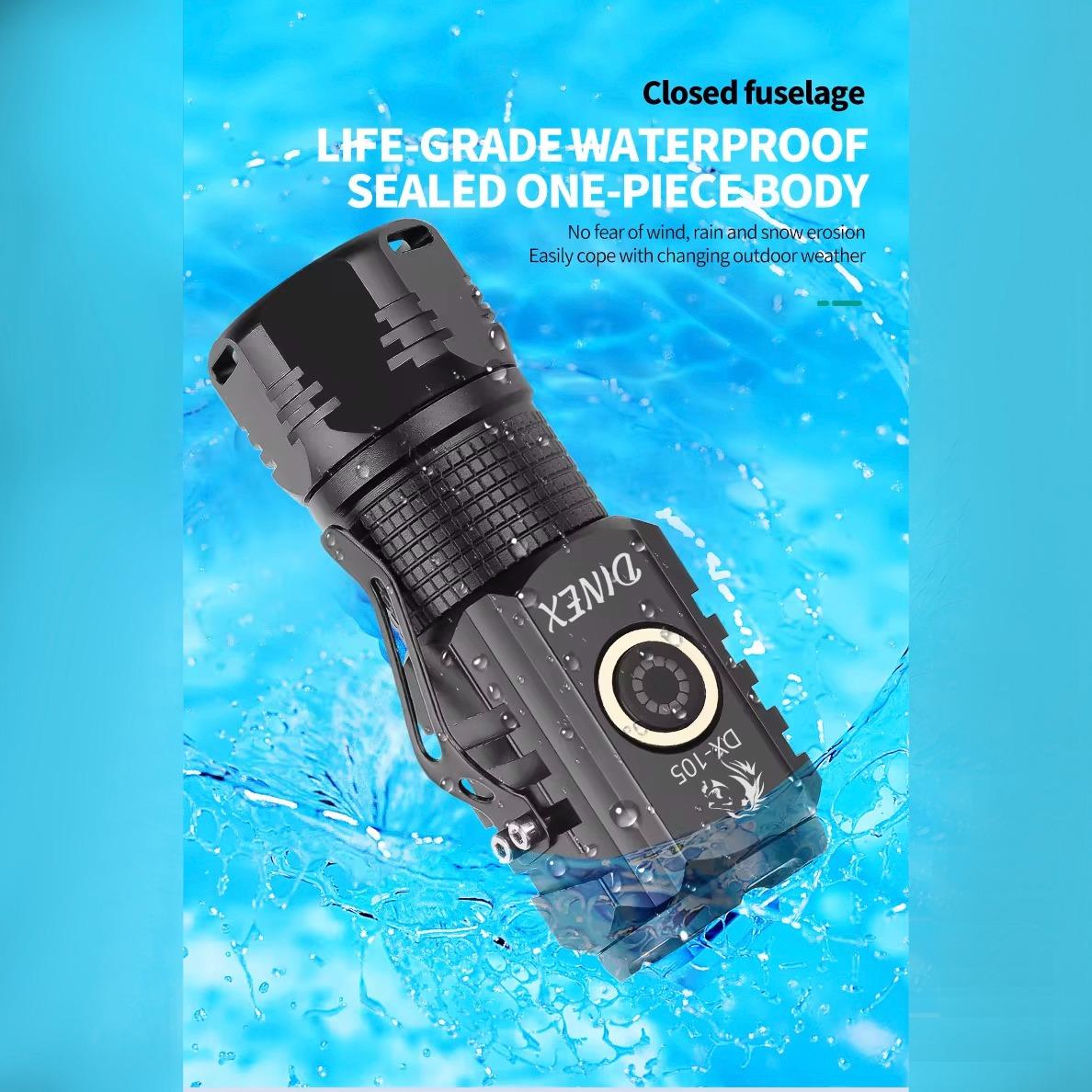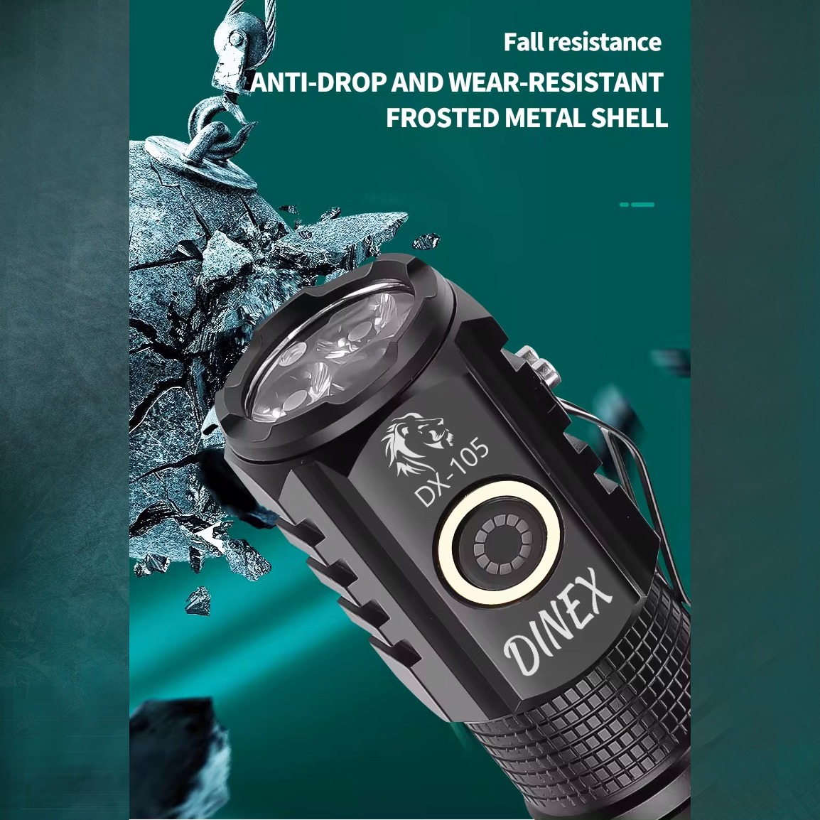 چراغ قوه DX-105 از برند DINEX درای سه لامپ p35 ورژن جدید میباشد برای استفاده از حداکثر نور چراغ قوه باید دو بار پشت سر هم کلید چراغ قوه را فشار دهید این چراغ قوه ضد آب دارای گواهی IP64 میباشد باتری این چراغ قوه مدل 18350 با ظرفیت 900mah میباشد که در حالت حداکثر نور 3500 لومن حدود 1 ساعت دوام و به ترتیب در حالت های 1000 و 500 و 100 لومن حدودا 3 ساعت , 5 ساعت , 35 ساعت دوام دارد