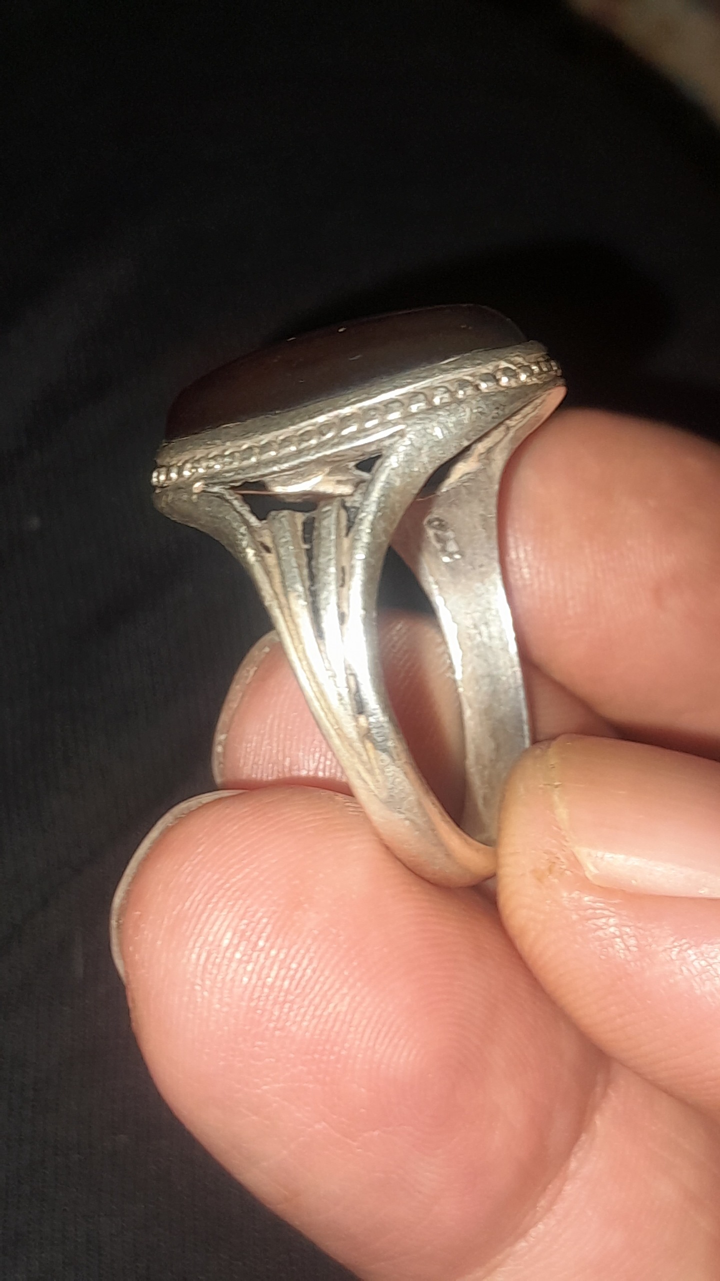 انگشتر نقره کهنه عیار بالا پنبه با نگین فابریک عقیق یمنی وزن7ونیم گرم