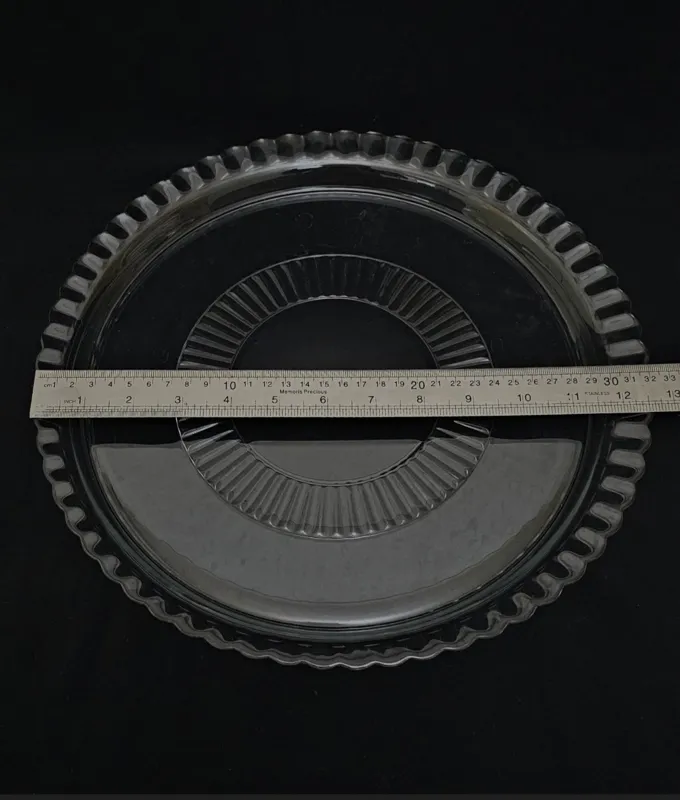 یک عدد کیک خوری فرانسه قدیم.باحک مارک فرانسه روی درب ودیس حک آرک ،بزرگترین سایز کاملا سالم وتمیز (قسمت دالبری لبه دیس با علامت مشخص شده کمی پهن تر ازقسمت دیگه به نظر میرسه وکارخونه ایی تاثیری درکیفیت وکارایی نداره صرفا جهت اطمینان درخرید ذکر شد)کیفیت وابعاد