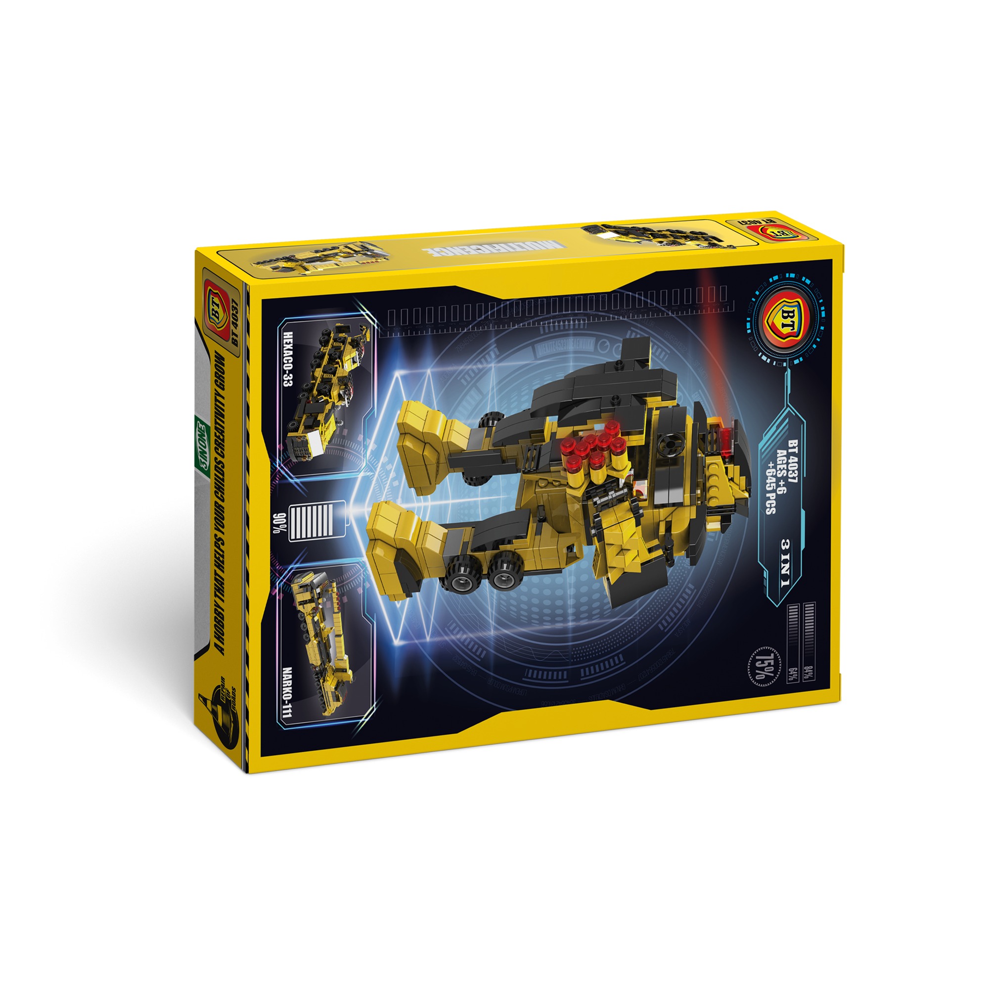 این لگو با داشتن 645 قطعه جزو لگوهای پیچیده با قطعات بالا محسوب میشود. کودک میتواند این قطعات را در کنار هم قرار داده و 2 مدل ماشین راهسازی بزرگ و همچنین 1 مدل ربات بسازد. خلاقیت در این لگو بسیار بالاست. جنس این محصول از پلاستیک فشرده بوده و همراه خود یک برگه راهنما دارد تا چگونگی ساخت ماشین ها و ربات را به کودک آموزش دهد.