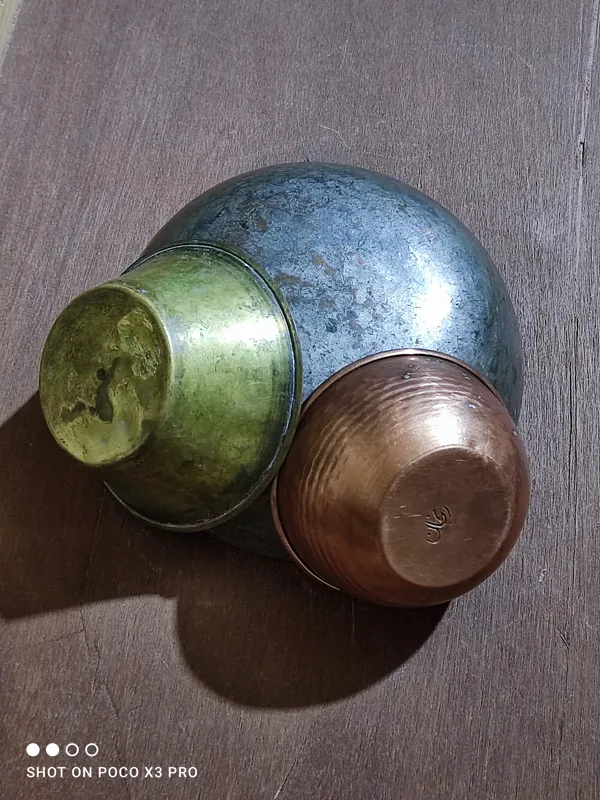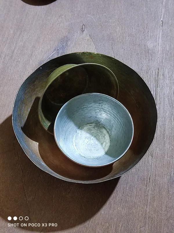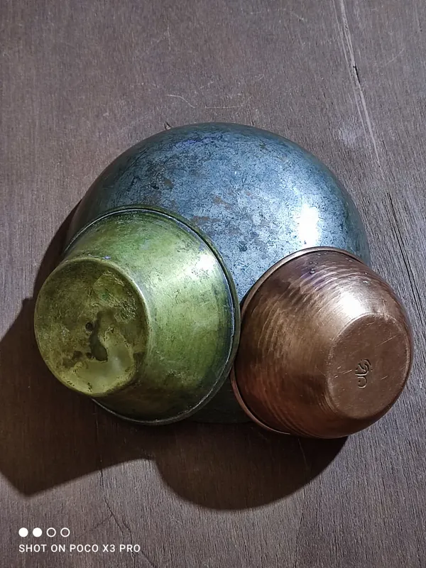 سه عدد کاسه قدیمی دوتاش مسیدونش برنج کهنه و دستساز مطابق تصاویر قیمت برای همشه