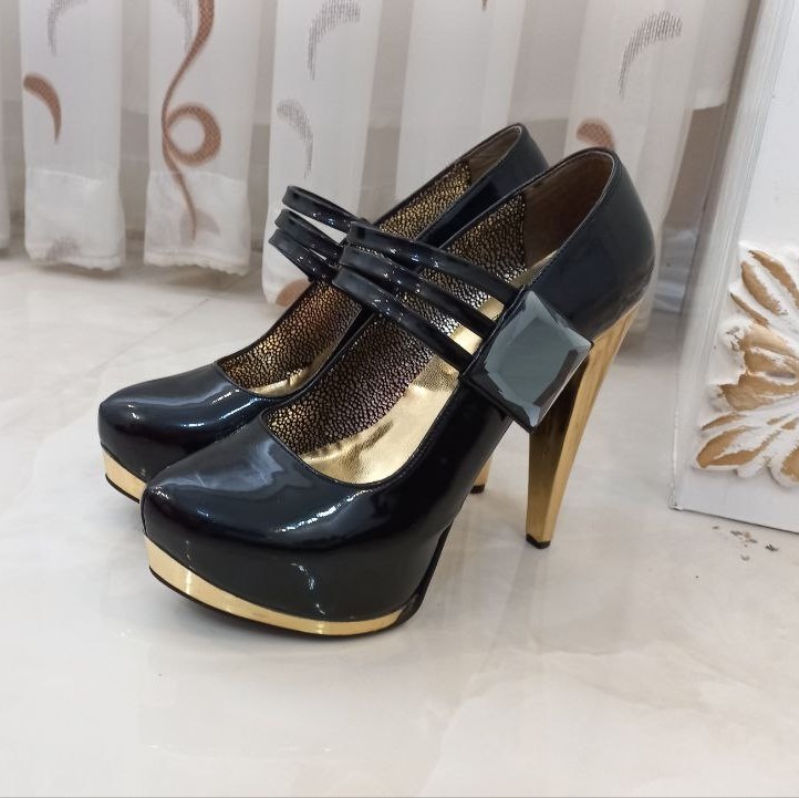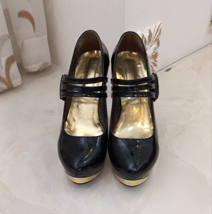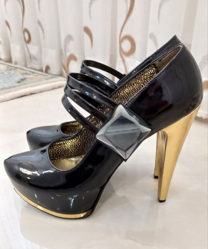 اندازه های کفش: کف کفش از داخل 26 سانت هست و 13 سانت پاشنه داره و سایز روی کفش 40 هست