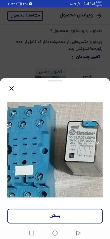 رله شیشه ای فیندر 3کنتاکت 24 ولت مستقیم 10 آمپر ساخت ایتالیا همراه با سوکت