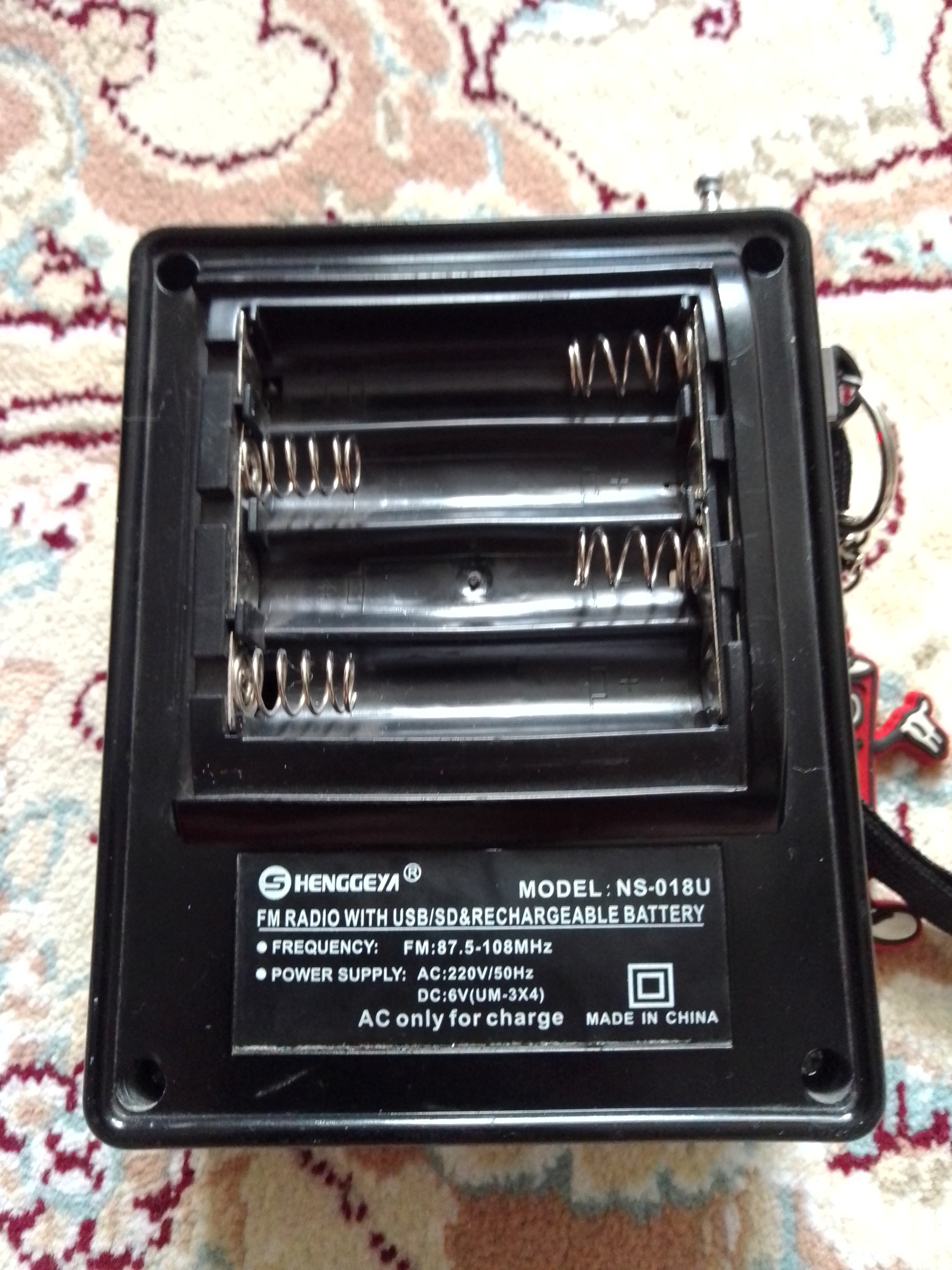 اسپیکر قدیمی سالم و روشن باتری لیتیوم یونی شده است. درب باتریش نیست.