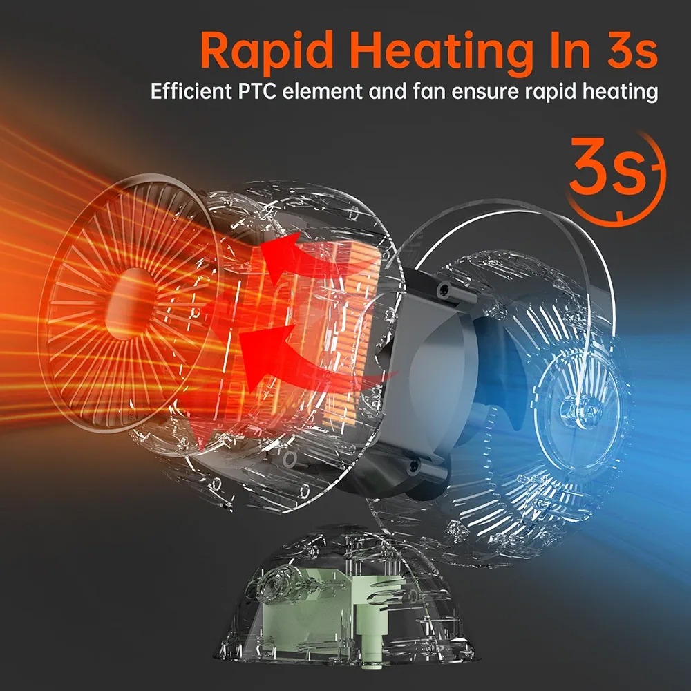 گرمایش سریع و مطمئن بخاری برقی فندار با اجزای گرمایشی سرامیکی پیشرفته و پدهای گرمایشی PTC، که میتواند در عرض 3 ثانیه تا 80 درجه فارنهایت گرم شود و دمای محیطی مطبوعی را برای خانه، اتاق خواب، محل کار و زیر میز شما در محیطهای سرد فراهم کند.