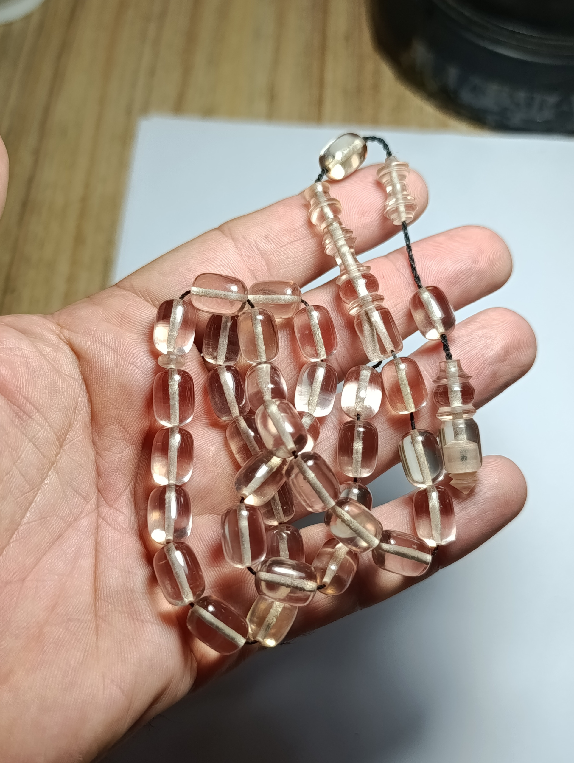 درود بر شما بزرگواران ( وزن با سربند حدودا 27 گرم سایز 9 )...سندلوس موادی است که از زمان جنگ جهانی دوم به بعد در کشور آلمان برای صنعت ..اسلحه سازی ..مصالح ساختمانی ..و غیره.. به دلیل نسوز بودن آن و کاربردهای زیادش ساخته شد که به شکل کتاب هایی به اندازه های مختلف وارد بازارهای جهانی شده و کاربردهای زیادی دارد و کشور آلمان هرگز طرز تهیه آن را به هیچ کشوری نداده و در کشور های مسلمان از سندلوس به عنوان تسبیح و چوب سیگاری و دسته چاقو و تاسو غیره ..استفاده میشود ..متاسفانه در کشور ایران بعضی افراد سود جو برای اینکه سود بیشتری براشون حاصل بشه سندلوسهای قدیمی رو صمغ مینامند و جدید ها رو شمش و مواد .. که کاملا اشتباه است..سندلوس از بدو پیدایشش مواد بوده و الان هم تولید میشه ..سوال اینجاست ..اگر سندلوس صمغ درخت است چرا نسوز است؟؟ مگر صمغ درخت نمیسوزد ؟؟..واقعا باید کمی فکر کنیم و به نتیجه برسیم ..چالشی که ایجاد شده اینجاست که کشورهای پاکستان و ویتنام و هند مدعی هستند که سندلوس میسازد ولی کاملا نتوانسته به مواد کلی دستیابی داشته باشد و سندلوسهای این کشورها از نظر کیفیت بسیار پایین هستند ..امروزه در کشور آلمان با سهامداران و مشارکت مسلمانان کشور ترکیه سندلوس تولید میشود و تولید آن متوقف نشده است ..برای شناخت مرغوبیت سندلوس بشاش بودن و زلال بودن و نسوز بودن آن ملاک است نه چیز دیگری ..سندلوسها به مرور زمان وقتی کهنه میشوند بوی خاصی میدهند که نشانگر قدمت اون میشه ..در تراشهای جدید هم به مرور زمان این مورد محقق میگردد و هیچ فرقی میان سندلوسهای قدیمی و جدید وجود ندارد و البته با پیشرفت تکنولوژی سندلوسهای جدید از نظر کیفی حتی بهتر از قدیمیها میباشند ....ارادتمند شما شهرامفر