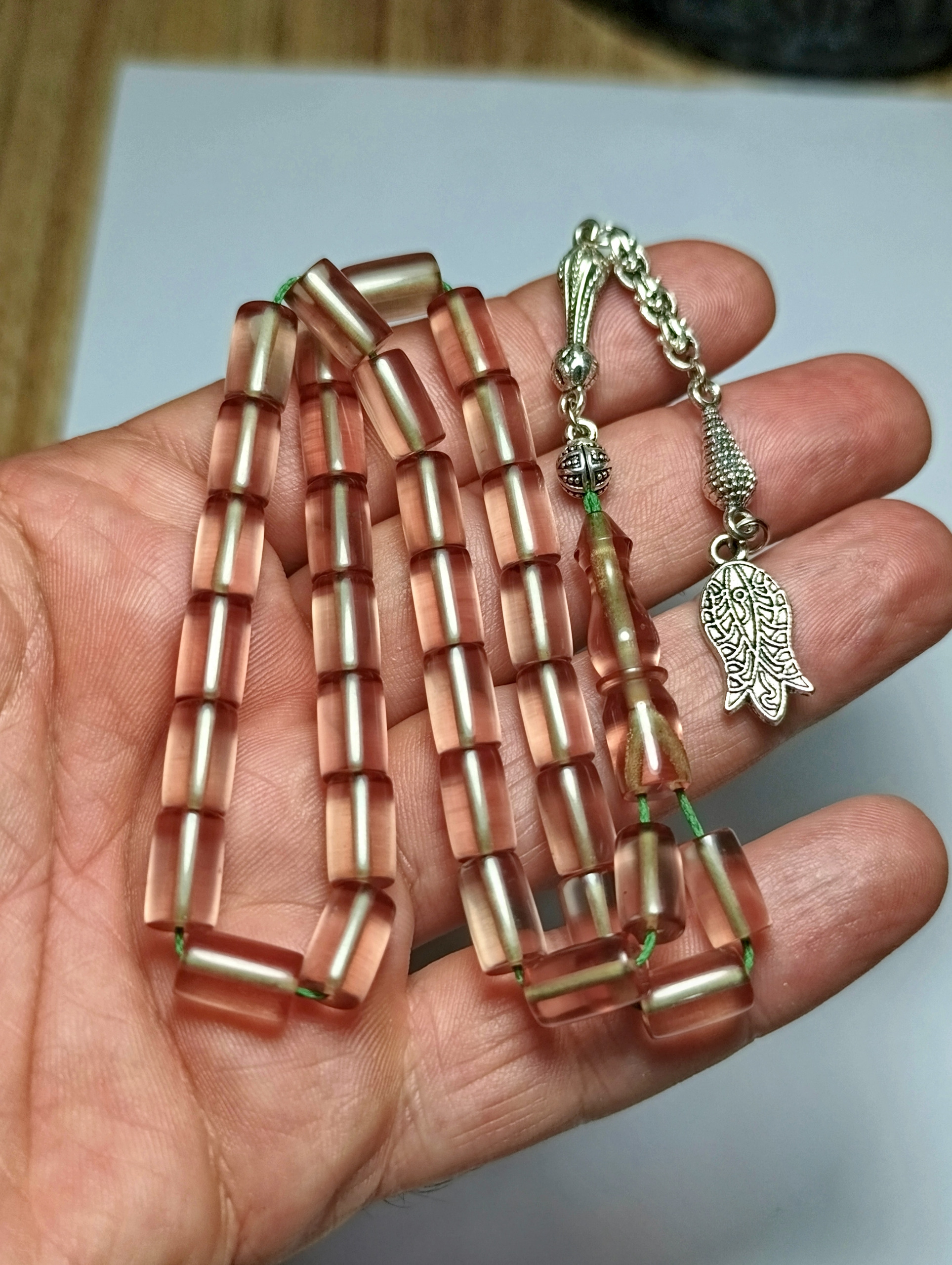 درود بر شما بزرگواران ( وزن با سربند حدودا 20 گرم سایز 6 )...سندلوس موادی است که از زمان جنگ جهانی دوم به بعد در کشور آلمان برای صنعت ..اسلحه سازی ..مصالح ساختمانی ..و غیره.. به دلیل نسوز بودن آن و کاربردهای زیادش ساخته شد که به شکل کتاب هایی به اندازه های مختلف وارد بازارهای جهانی شده و کاربردهای زیادی دارد و کشور آلمان هرگز طرز تهیه آن را به هیچ کشوری نداده و در کشور های مسلمان از سندلوس به عنوان تسبیح و چوب سیگاری و دسته چاقو و تاسو غیره ..استفاده میشود ..متاسفانه در کشور ایران بعضی افراد سود جو برای اینکه سود بیشتری براشون حاصل بشه سندلوسهای قدیمی رو صمغ مینامند و جدید ها رو شمش و مواد .. که کاملا اشتباه است..سندلوس از بدو پیدایشش مواد بوده و الان هم تولید میشه ..سوال اینجاست ..اگر سندلوس صمغ درخت است چرا نسوز است؟؟ مگر صمغ درخت نمیسوزد ؟؟..واقعا باید کمی فکر کنیم و به نتیجه برسیم ..چالشی که ایجاد شده اینجاست که کشورهای پاکستان و ویتنام و هند مدعی هستند که سندلوس میسازد ولی کاملا نتوانسته به مواد کلی دستیابی داشته باشد و سندلوسهای این کشورها از نظر کیفیت بسیار پایین هستند ..امروزه در کشور آلمان با سهامداران و مشارکت مسلمانان کشور ترکیه سندلوس تولید میشود و تولید آن متوقف نشده است ..برای شناخت مرغوبیت سندلوس بشاش بودن و زلال بودن و نسوز بودن آن ملاک است نه چیز دیگری ..سندلوسها به مرور زمان وقتی کهنه میشوند بوی خاصی میدهند که نشانگر قدمت اون میشه ..در تراشهای جدید هم به مرور زمان این مورد محقق میگردد و هیچ فرقی میان سندلوسهای قدیمی و جدید وجود ندارد و البته با پیشرفت تکنولوژی سندلوسهای جدید از نظر کیفی حتی بهتر از قدیمیها میباشند ....ارادتمند شما شهرامفر
