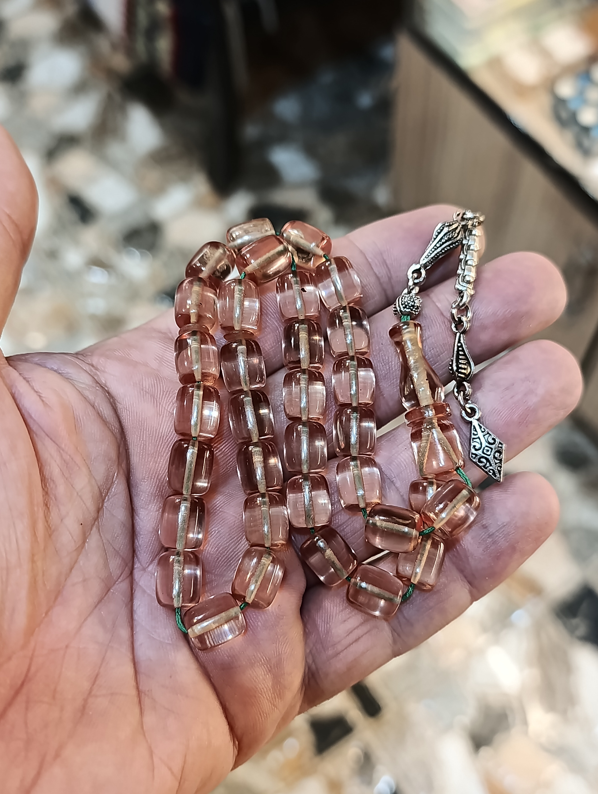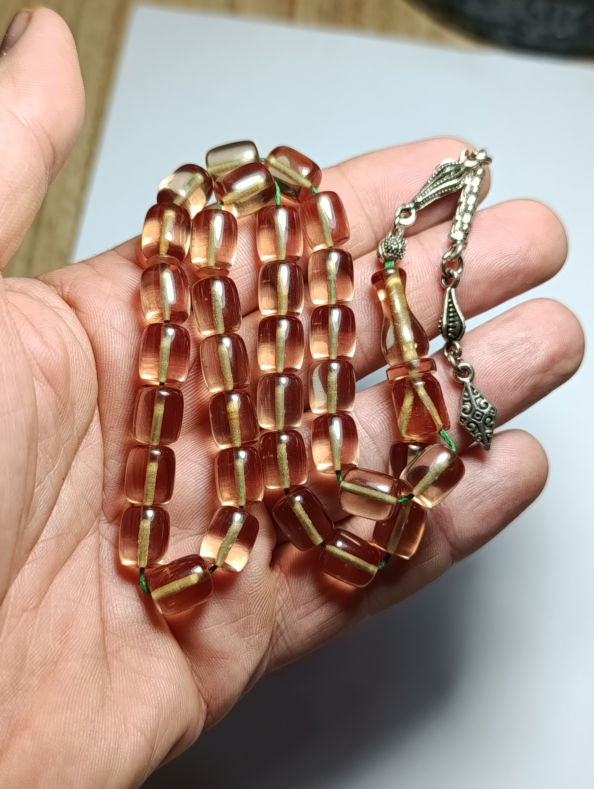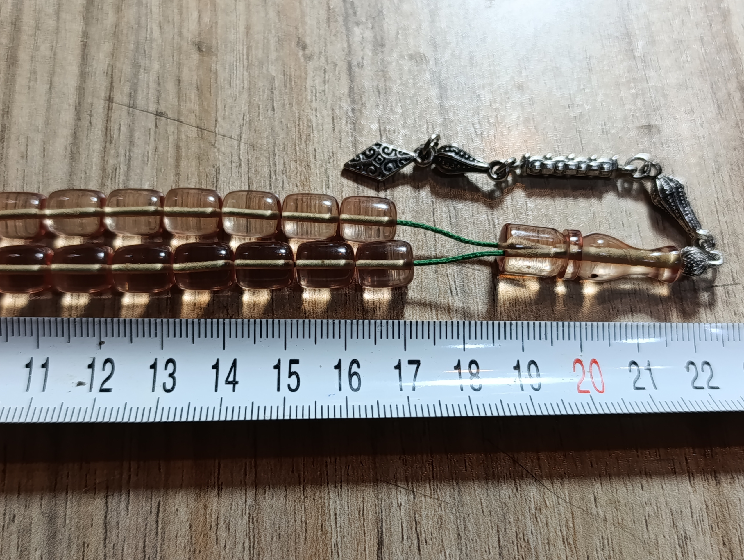 درود بر شما بزرگواران ( وزن با سربند حدودا 26 گرم سایز 8 )...سندلوس موادی است که از زمان جنگ جهانی دوم به بعد در کشور آلمان برای صنعت ..اسلحه سازی ..مصالح ساختمانی ..و غیره.. به دلیل نسوز بودن آن و کاربردهای زیادش ساخته شد که به شکل کتاب هایی به اندازه های مختلف وارد بازارهای جهانی شده و کاربردهای زیادی دارد و کشور آلمان هرگز طرز تهیه آن را به هیچ کشوری نداده و در کشور های مسلمان از سندلوس به عنوان تسبیح و چوب سیگاری و دسته چاقو و تاسو غیره ..استفاده میشود ..متاسفانه در کشور ایران بعضی افراد سود جو برای اینکه سود بیشتری براشون حاصل بشه سندلوسهای قدیمی رو صمغ مینامند و جدید ها رو شمش و مواد .. که کاملا اشتباه است..سندلوس از بدو پیدایشش مواد بوده و الان هم تولید میشه ..سوال اینجاست ..اگر سندلوس صمغ درخت است چرا نسوز است؟؟ مگر صمغ درخت نمیسوزد ؟؟..واقعا باید کمی فکر کنیم و به نتیجه برسیم ..چالشی که ایجاد شده اینجاست که کشورهای پاکستان و ویتنام و هند مدعی هستند که سندلوس میسازد ولی کاملا نتوانسته به مواد کلی دستیابی داشته باشد و سندلوسهای این کشورها از نظر کیفیت بسیار پایین هستند ..امروزه در کشور آلمان با سهامداران و مشارکت مسلمانان کشور ترکیه سندلوس تولید میشود و تولید آن متوقف نشده است ..برای شناخت مرغوبیت سندلوس بشاش بودن و زلال بودن و نسوز بودن آن ملاک است نه چیز دیگری ..سندلوسها به مرور زمان وقتی کهنه میشوند بوی خاصی میدهند که نشانگر قدمت اون میشه ..در تراشهای جدید هم به مرور زمان این مورد محقق میگردد و هیچ فرقی میان سندلوسهای قدیمی و جدید وجود ندارد و البته با پیشرفت تکنولوژی سندلوسهای جدید از نظر کیفی حتی بهتر از قدیمیها میباشند ....ارادتمند شما شهرامفر