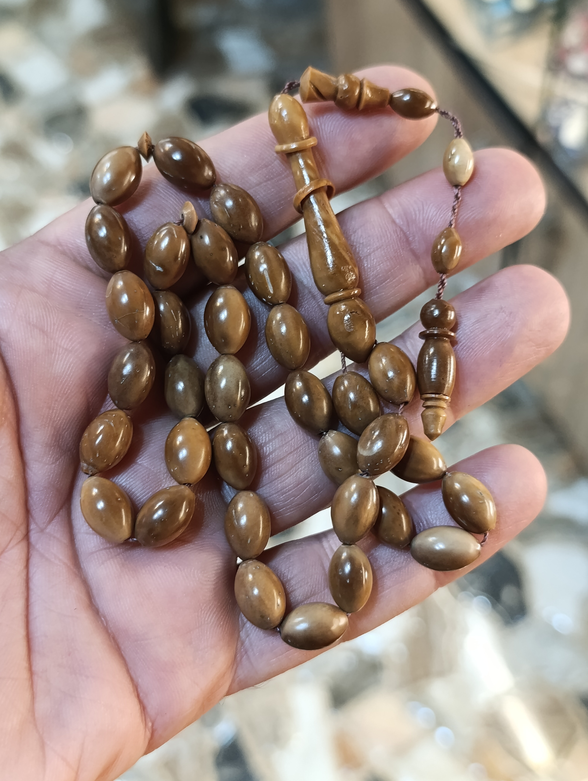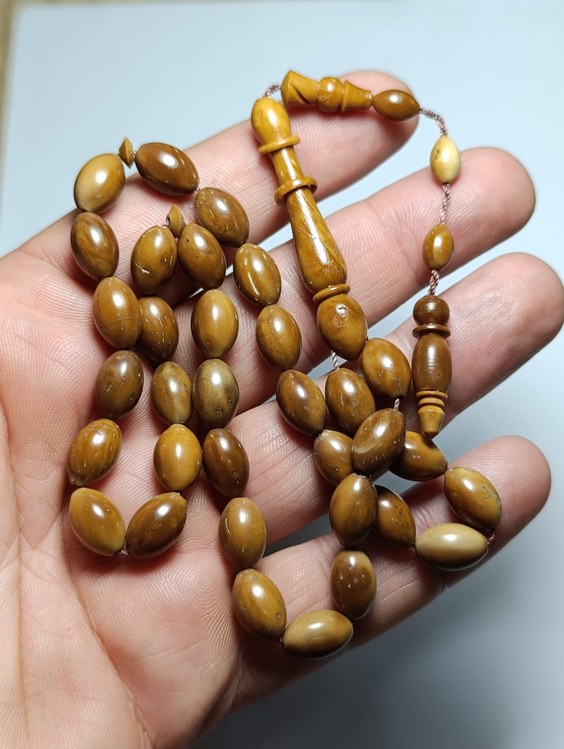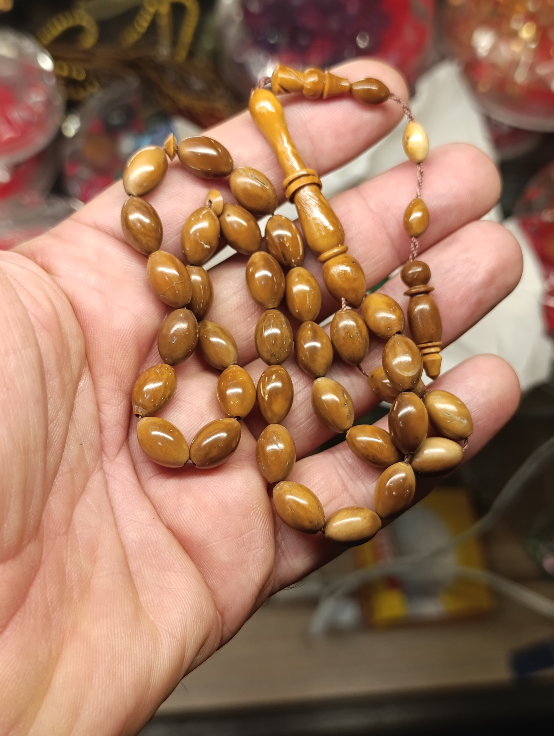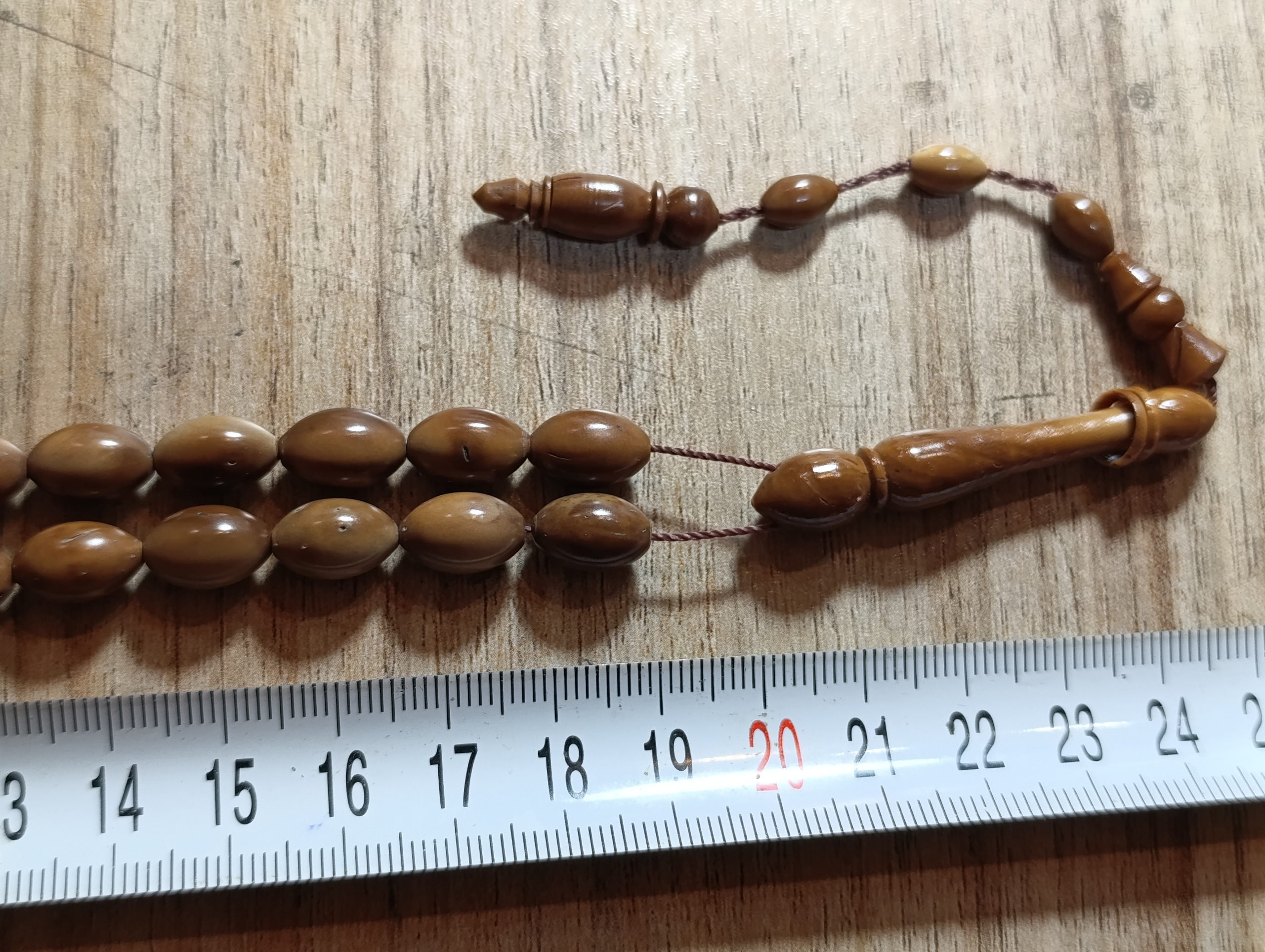( سایز8 وزن 18 گرم) یکار با اصالت کشکول ناب با تراش حرفه ای . دو تاحلقه از خود شیخ بیرون کشیده شده کار پر زحمت و حرفه ای . کشکول طبع گرم دارد .دوستان خط و خش در تسبیحهای کشکول کاملا طبیعی هستش . قبل از خرید بررسی کنید .