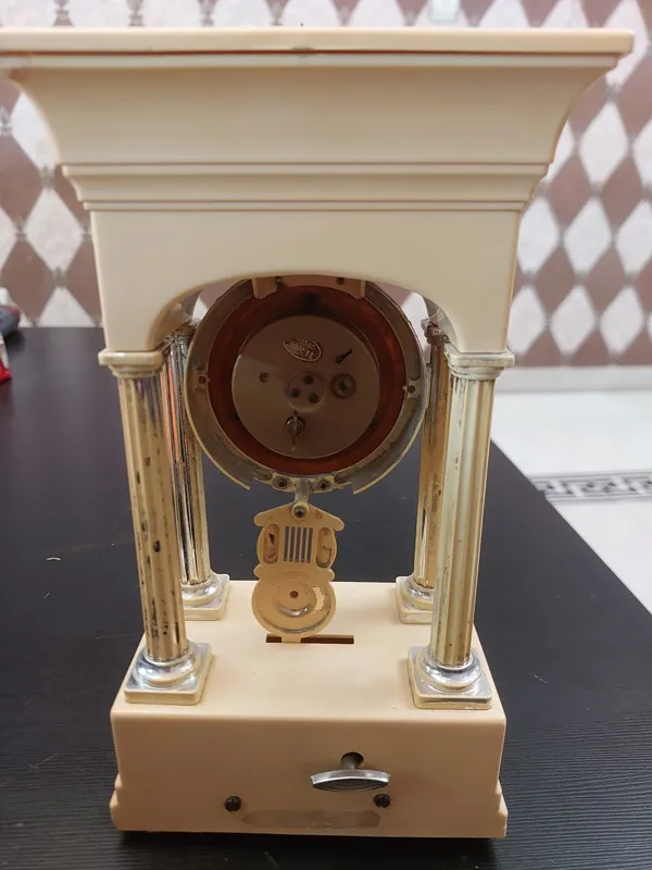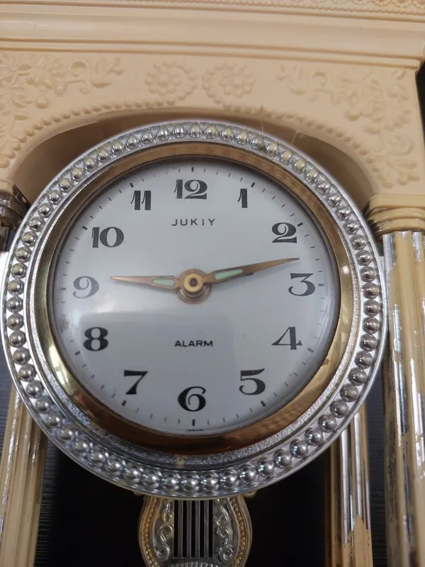 ساعت رومیزی قدیمی ژاپنی ساعت خیلی تمیز و در حد نو است ولی قاب پلاستیکی مال خودش نیست این قاب پایین مجزا با کوک کردن موزیک پخش میکند بالای قاب هم جای مخفی دارد ساعت مارک مشهور ژوکی ژاپنی است
